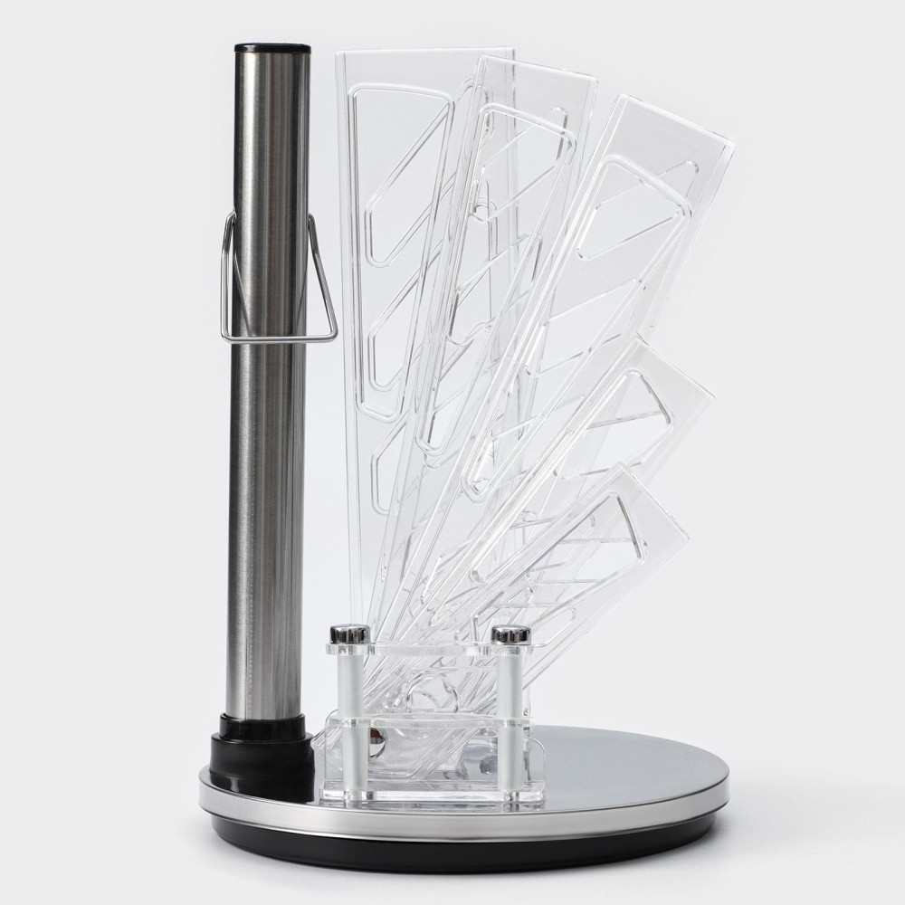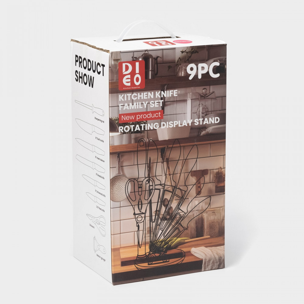 • стильная подставка: набор ножей поставляется с прочной и устойчивой подставкой, которая не только стильно выглядит, но и обеспечивает безопасное хранение ваших ножей. Подставка также позволяет легко выбрать нужный нож без необходимости поиска его в ящике;