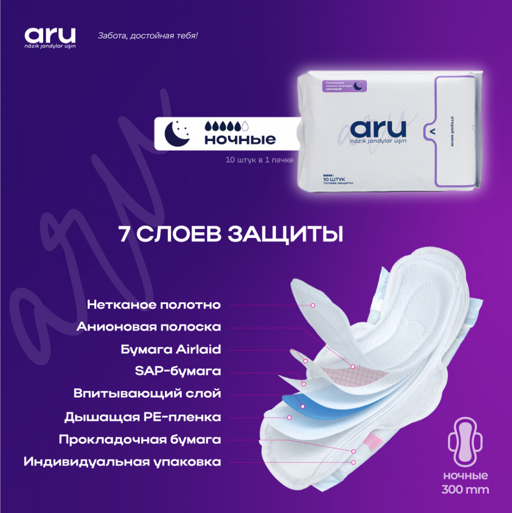 Aru Прокладки женские гигиенические ночные