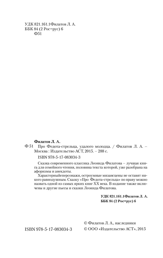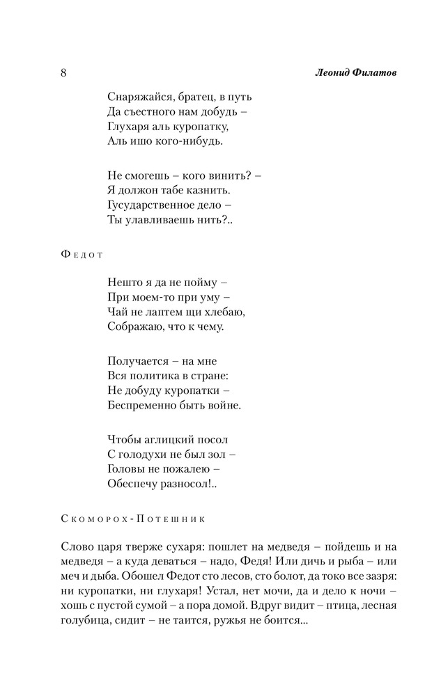 Произведение Филатова про Федота-стрельца можно заучивать на цитаты. По этой причине и купил книгу. Не пожалел, нисколько о потраченных деньгах. Рекомендую.