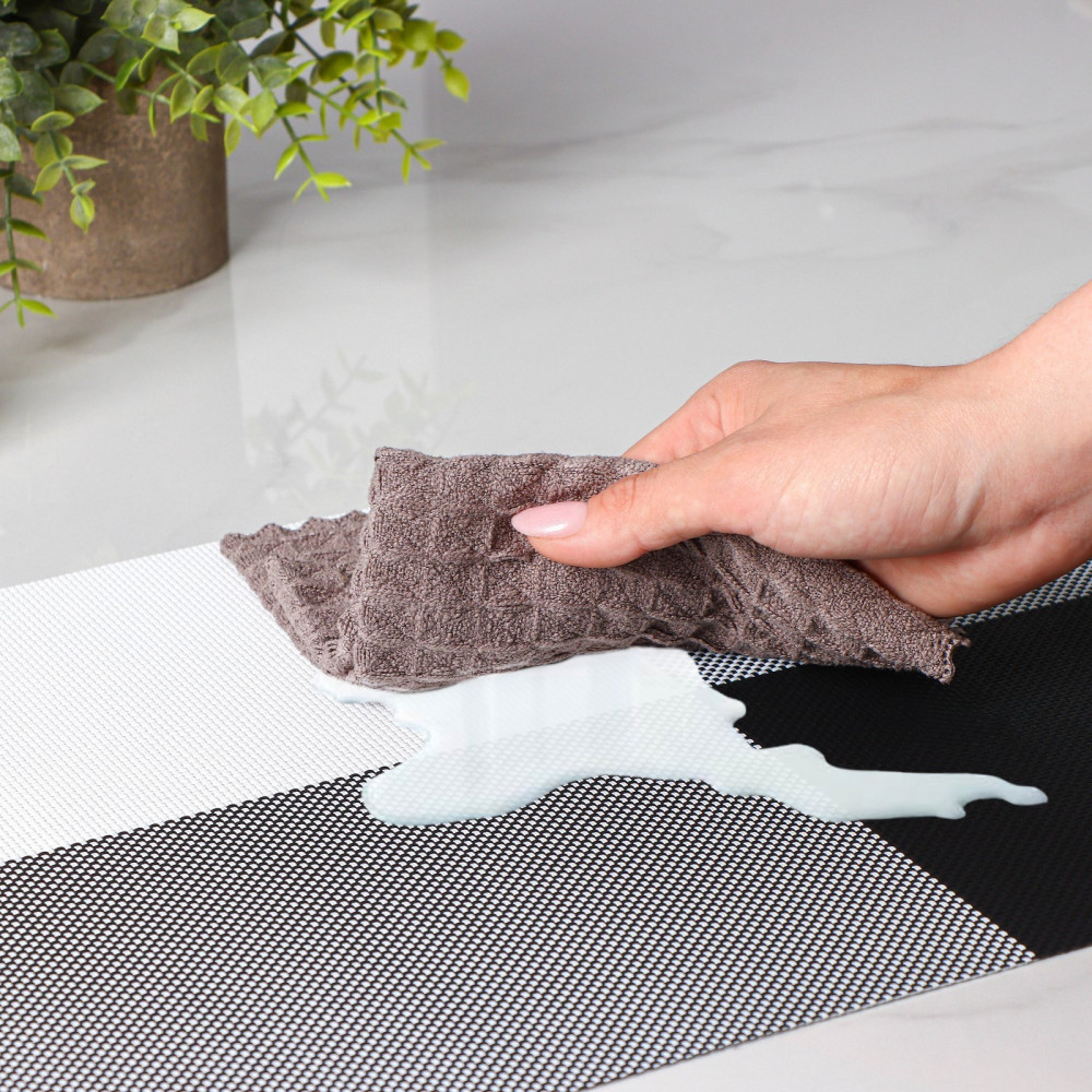 Идеально чистый стол даже после шумного застолья — это реальность? С ковриками и салфетками — да! Хозяйки всего мира уже успели оценить их удобство и высокое качество. Кухонная салфетка не только оградит поверхности от пятен и крошек, но и позволит с минимальными усилиями и вложениями освежить интерьер. Также салфетку можно использовать как подставку под горячее — изделие может сберечь столы, тумбы, скатерти и клеёнки от повреждения нагретой посуды. Возьмите их с собой на пикник, используйте в квартире или на дачном участке: вы ограничены только вашей фантазией!