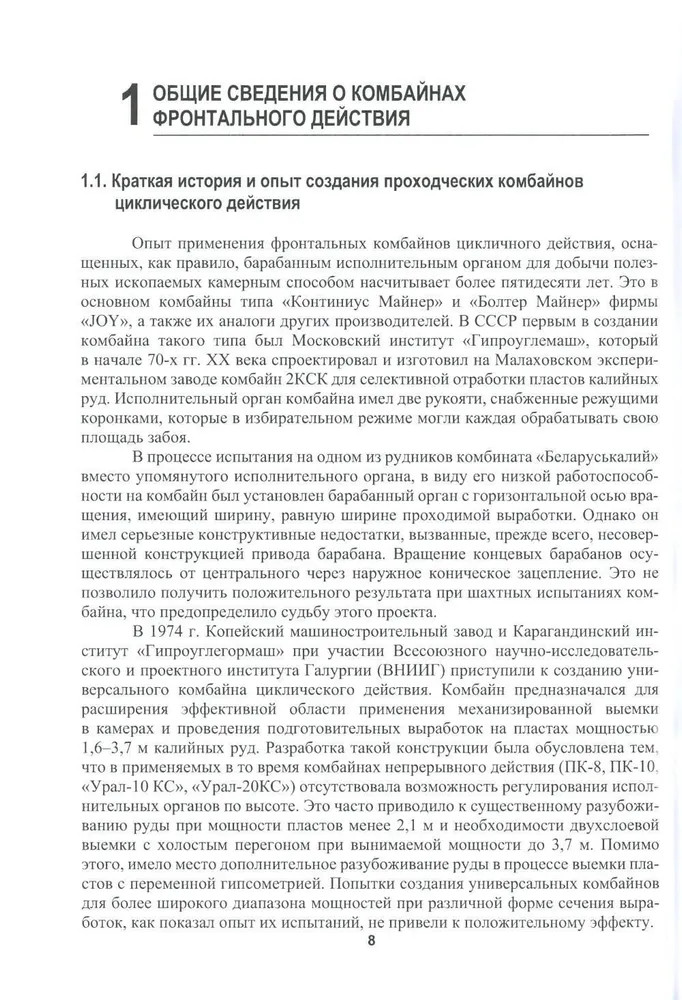 Приведены краткая история и опыт создания комбайнов фронтального действия отечественного и зарубежного производства, их классификация, область применения, технические характеристики и перспективы их развития. Показаны закономерности разрушения угля и калийных руд режущим инструментом. Представлены методы и инженерные методики выбора основных параметров, силового расчета и проектирования их исполнительных органов при разрушении углей и калийных руд. Отдельно рассмотрен метод математического моделирования процесса разрушения угольного массива резцом комбайна, основанный на решении краевой задачи линейной механики разрушения. Для студентов и аспирантов, изучающих горное дело. |