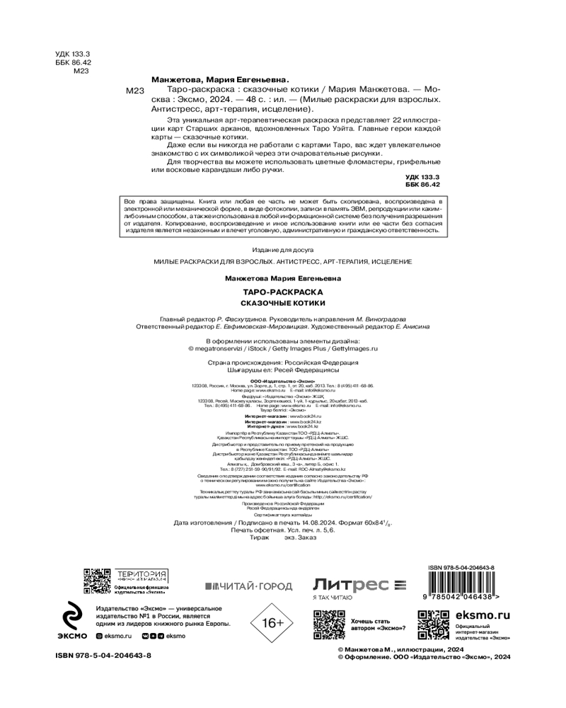 Серия: Милые раскраски для взрослых. Антистресс, арт-терапия, исцеление Погрузитесь в мир магии и искусства с нашей удивительной раскраской! Исследуйте тайны старших арканов Таро Уэйта через очаровательные и детализированные авторские иллюстрации сказочных котиков. |