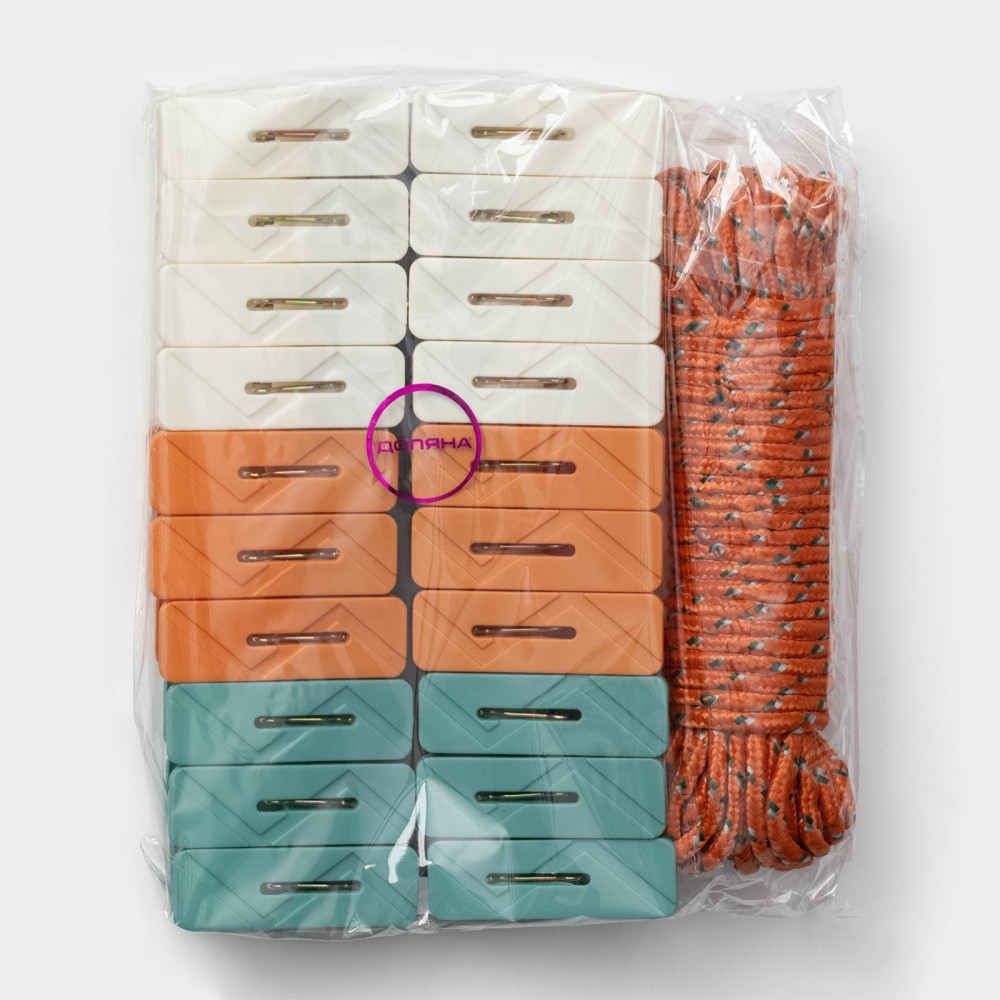 Доляна Набор прищепок бельевых с бельевой веревкой-25% +82