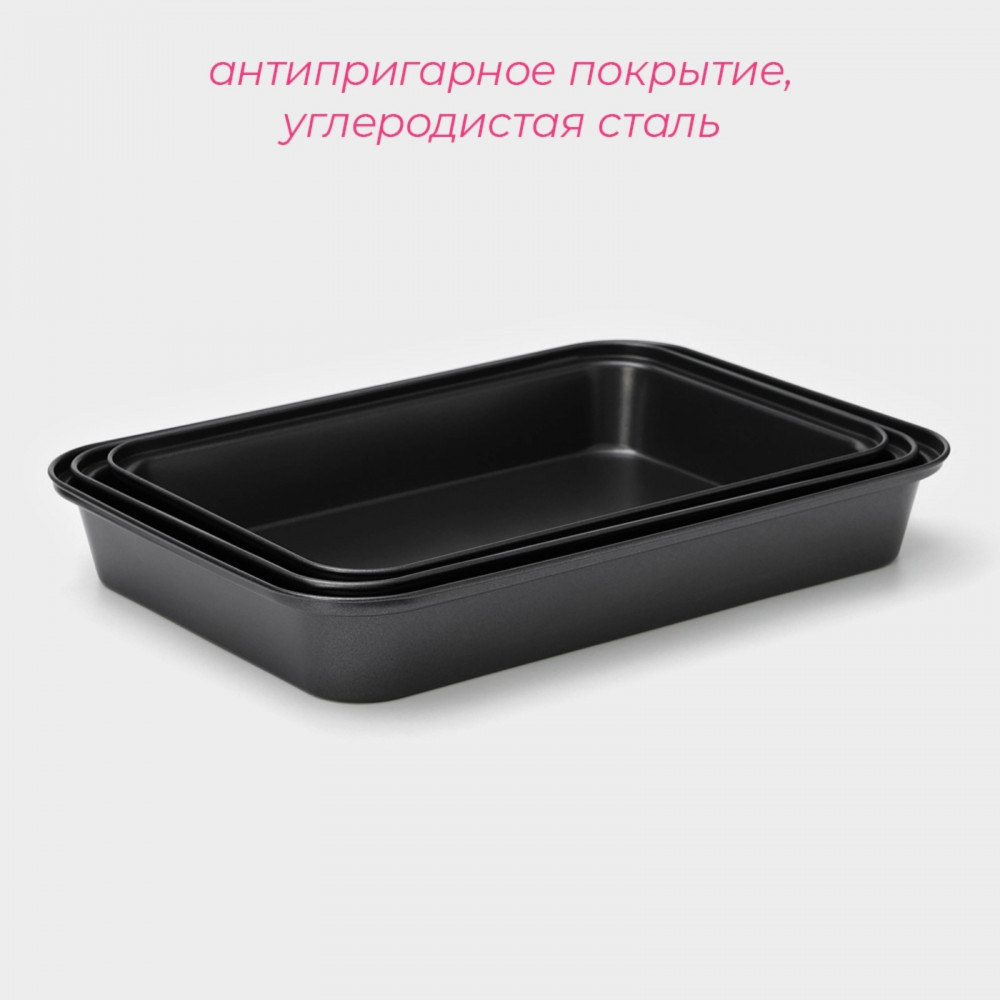• идеален для выпечки: благодаря антипригарному покрытию и оптимальным размерам, набор прекрасно подходит для выпечки пирогов, тортов, печенья и других блюд.