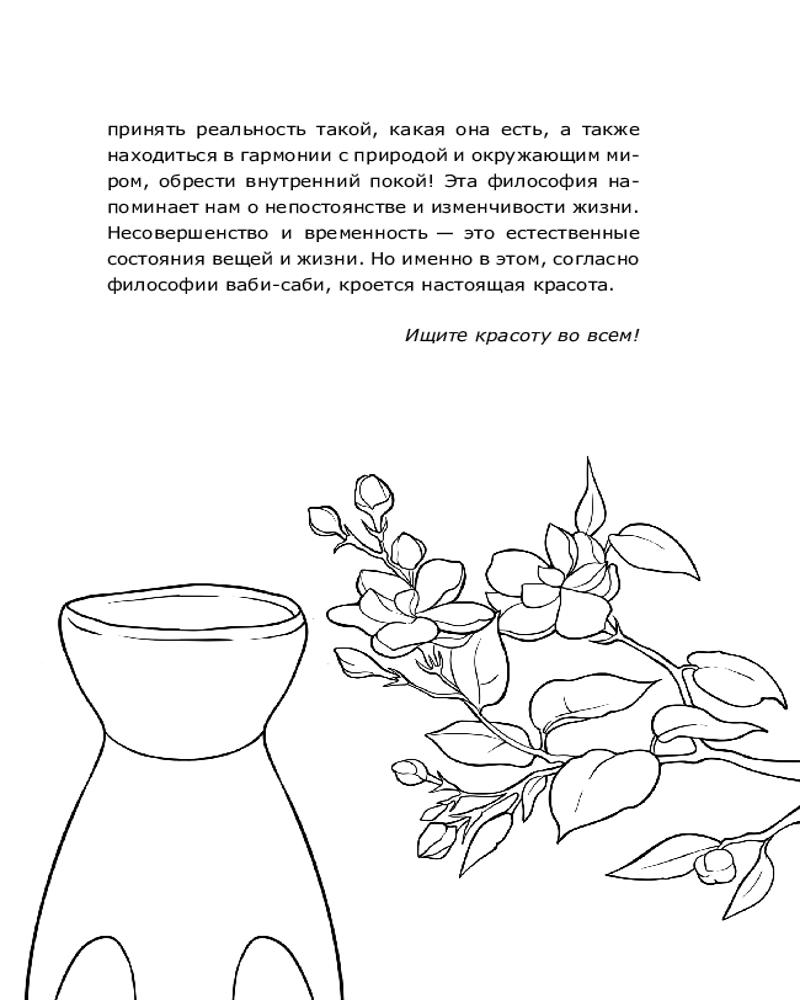 💳 Оплатить за товар можно при получении 🇰🇿 Есть бесплатная доставка по Казахстану от 1 дня 🎁 Копите бонусы с каждой покупки Серия: Арт-терапия для души Ваби-саби — отражение японской философии о том, что красота и гармония кроются в неидеальном, непостоянном, естественном, скромном и простом. Это образ жизни, который учит принимать мир таким, какой он есть, ценить его недостатки и изменчивость. |