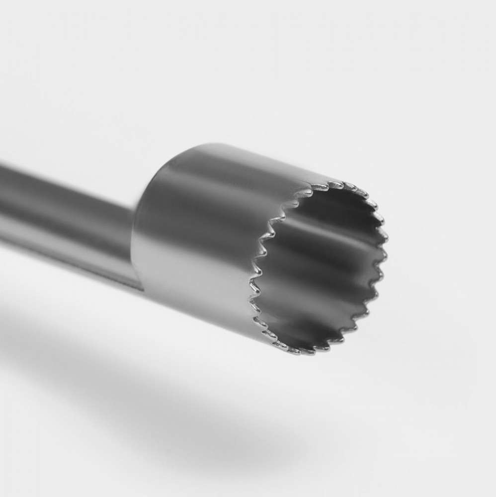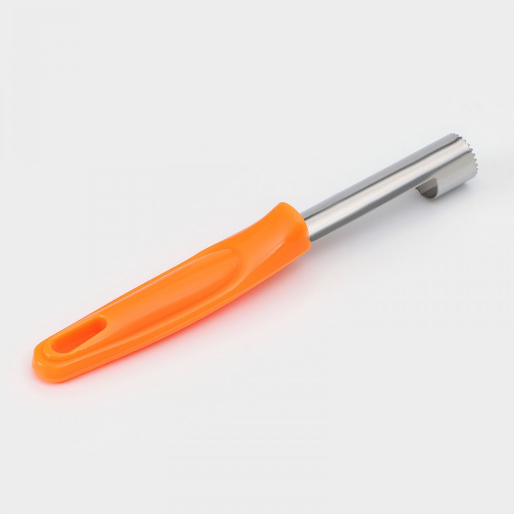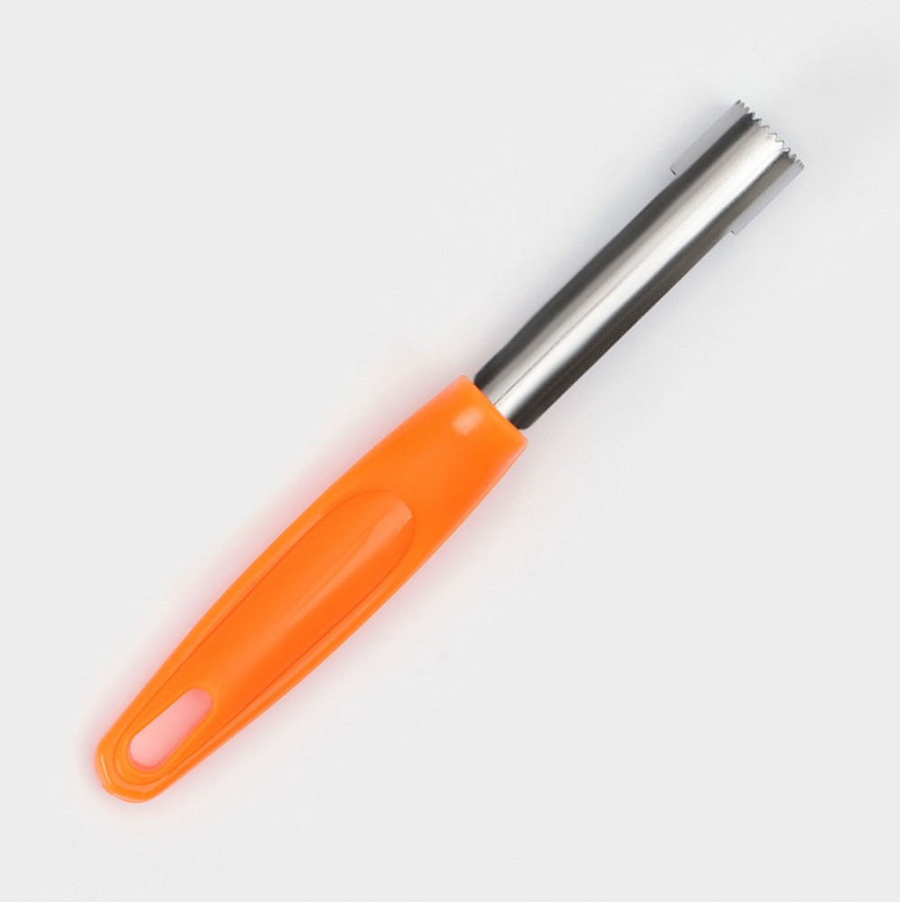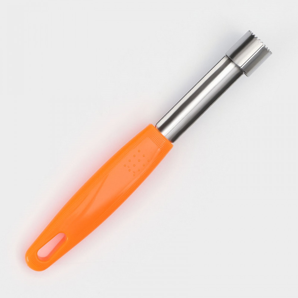 Нож для сердцевины — простой гаджет, который быстро избавит плод от косточек и плодоножки, оставив в центре аккуратное отверстие цилиндрической формы. Изделие имеет удобную ручку, которая не скользит в руке. Безопасное приспособление значительно облегчит процесс нарезки фруктов. Важно, что после такой процедуры яблоки и груши сохранят свой привлекательный внешний вид!