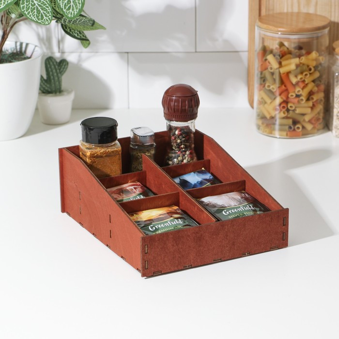 Создайте уют на своей кухне и поддерживайте порядок с деревянным органайзером для чая и кухонных принадлежностей! Этот элегантный аксессуар поможет вам организовать пространство, делая его функциональным и стильным.