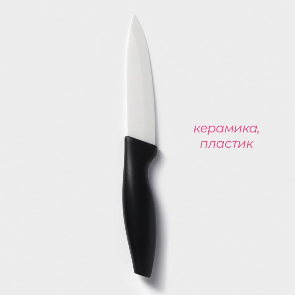 Универсальный керамический нож будет незаменим на кухне каждой хозяйки! Сделает нарезку любых видов продуктов легкой, сократит время, отведенное на готовку! Данный тип ножей изготавливают из особо прочной циркониевой керамики и закаляют при температуре +1500°C не менее двух дней. Это определяет главные достоинства инструмента — отсутствие необходимости в заточке, стойкость к коррозии. Благодаря низкой пористости керамическое лезвие не впитывает запахи и легко моется.