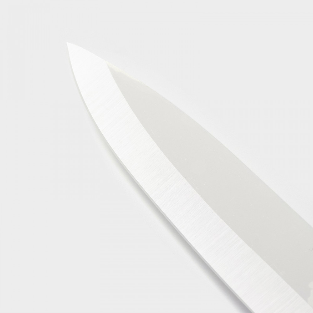 Универсальный керамический нож будет незаменим на кухне каждой хозяйки! Сделает нарезку любых видов продуктов легкой, сократит время, отведенное на готовку! Данный тип ножей изготавливают из особо прочной циркониевой керамики и закаляют при температуре +1500°C не менее двух дней. Это определяет главные достоинства инструмента — отсутствие необходимости в заточке, стойкость к коррозии. Благодаря низкой пористости керамическое лезвие не впитывает запахи и легко моется.