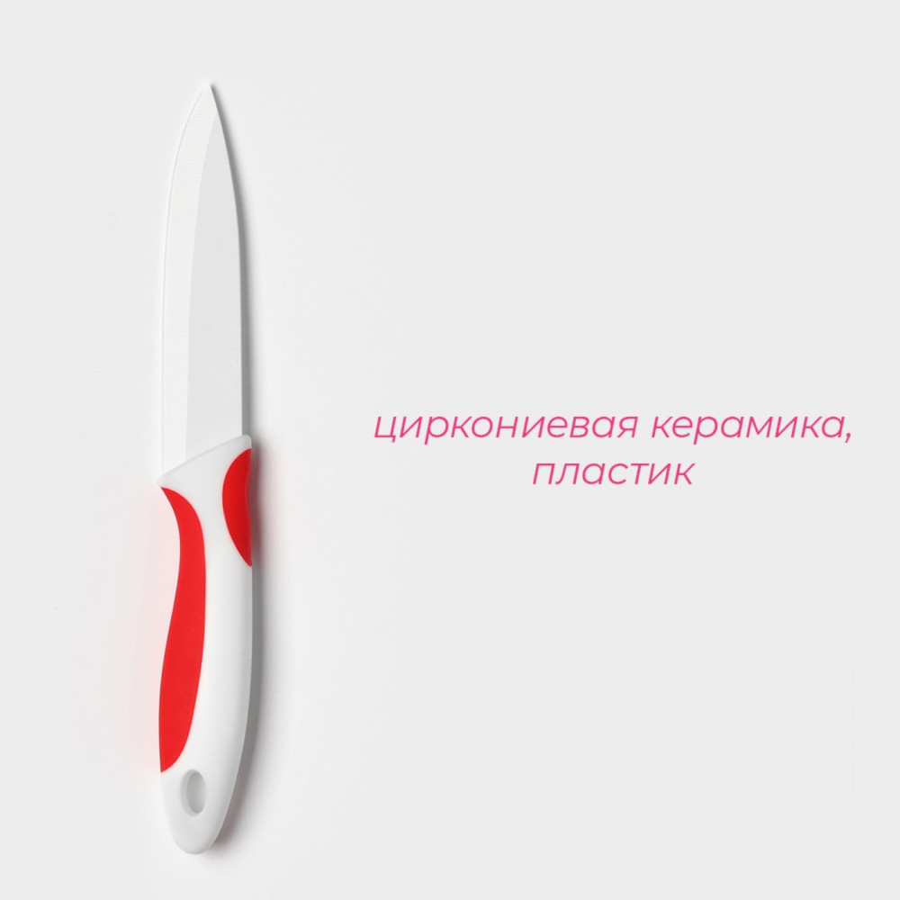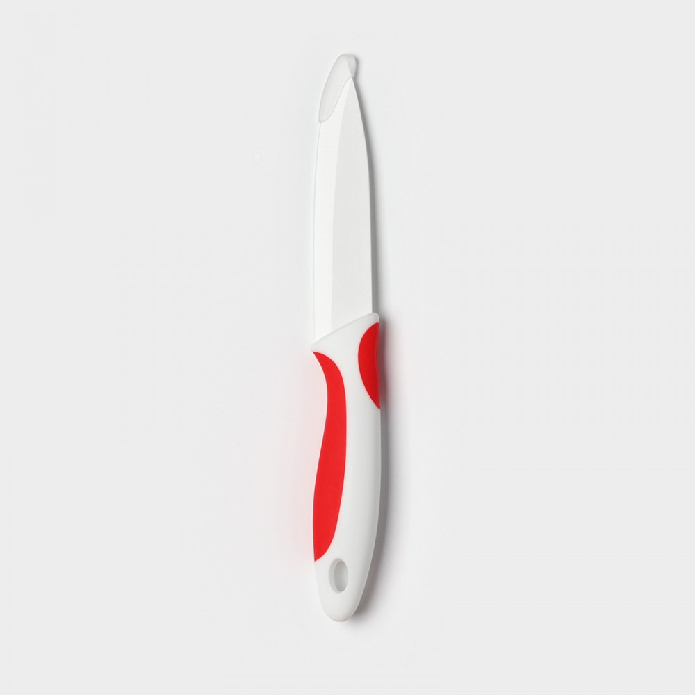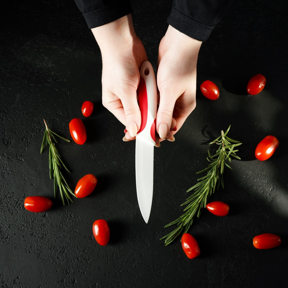 Универсальный керамический нож будет незаменим на кухне каждой хозяйки! Сделает нарезку любых видов продуктов легкой, сократит время, отведенное на готовку! Данный тип ножей изготавливают из особо прочной циркониевой керамики и закаляют при температуре +1500°C не менее двух дней. Это определяет главные достоинства инструмента — отсутствие необходимости в заточке, стойкость к коррозии. Благодаря низкой пористости керамическое лезвие не впитывает запахи и легко моется.