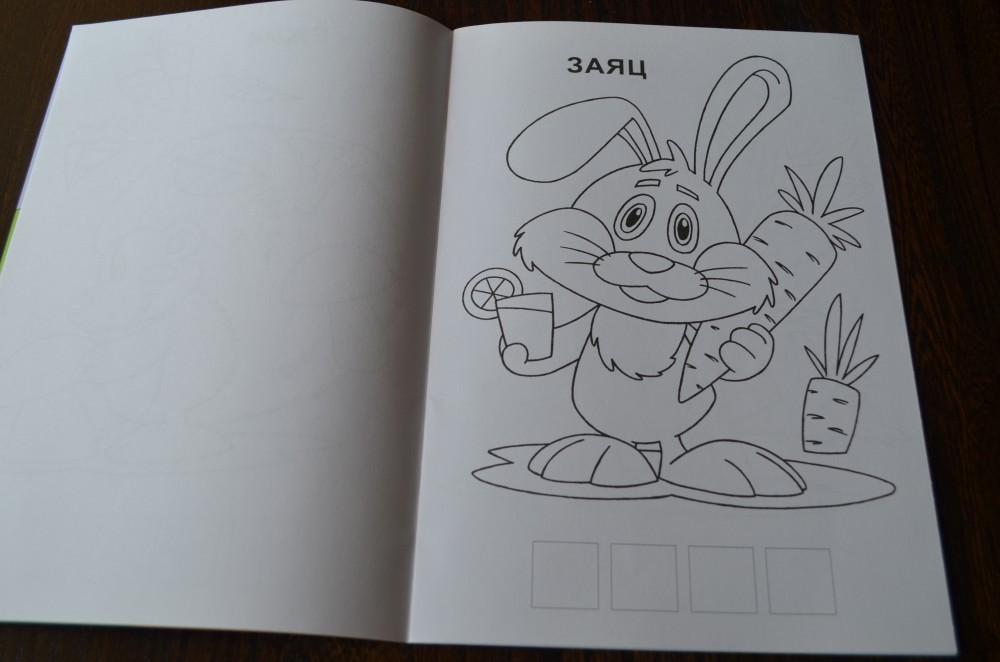 Книжка-раскраска понравилась. На обложке есть картинки с недостающими элементами, наклейки прилагаются. Зверюшки для раскрашивания забавные, снизу нужно наклеить их названия.
