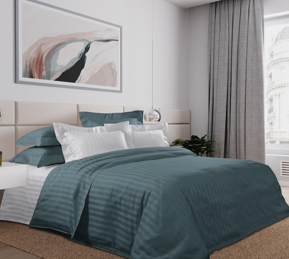 Комплект постельного белья страйп-сатин из длинноволокнистого пакистанского хлопка высокой плотности 200ТС. Сатиновое плетение придает ткани мягкость, шелковистость, эластичность и благородный блеск. Высококачественная натуральная ткань из 100% мерсеризованного хлопка отлично пропускает воздух и впитывает влагу, не вызывает аллергии и раздражения кожи, не накапливает статического электричества, хорошо драпируется и почти не мнется, можно гладить по настроению.