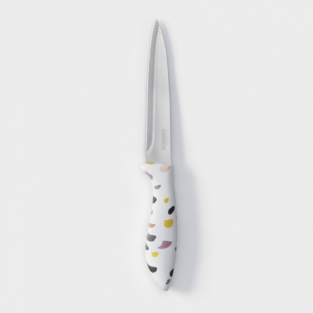 В данный момент этот товар отсутствует в продаже. Возможно, у нас найдется аналогичный или похожий товар здесь. Серия: Sparkle Нож кухонный универсальный Sparkle — незаменимый помощник на любой кухне, позволяющий легко и быстро выполнять различные задачи по нарезке, разделке и измельчению продуктов. С его помощью вы сможете приготовить практически любое блюдо, от простых закусок до сложных кулинарных изысков.