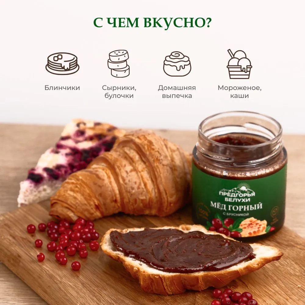 Предгорья Белухи Мед горный натуральный разнотравье с брусникой
