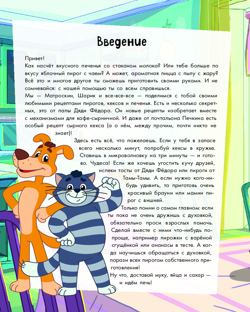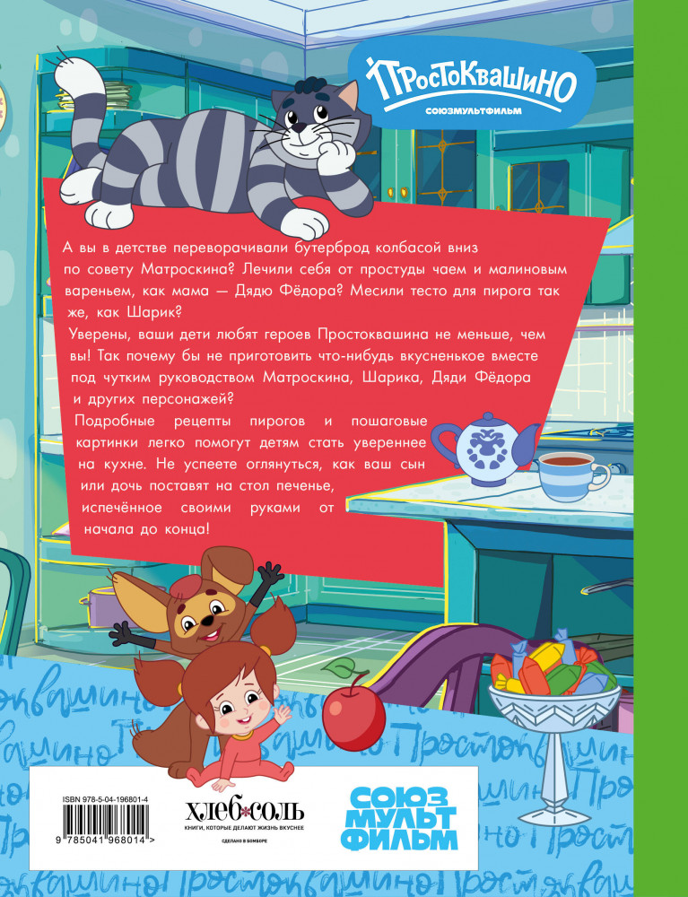 Серия: Кулинария. Готовим с Простоквашино Ваш ребенок проявляет живой интерес ко всему, что происходит на кухне? Или он уже научился готовить яичницу и бутерброды и теперь хочет чего-то поинтереснее? Как насчет горячих тостов на большую компанию друзей? Пятиминутных кексов в кружках с рыбкой, ветчиной или бананом? Или даже целого пирога с яблоками? Да-да, все эти вкусности ребята запросто научатся готовить самостоятельно, ведь помогать им будут любимые герои мультсериала «Простоквашино»! Матроскин, Шарик, Дядя Фёдор и все-все-все расскажут про 22 рецепта своей любимой выпечки. Проверенные рецепты и пошаговые картинки помогут ребятам не ошибиться. А помощь взрослых потребуется только тогда, когда пирог нужно будет отправить в духовку. |