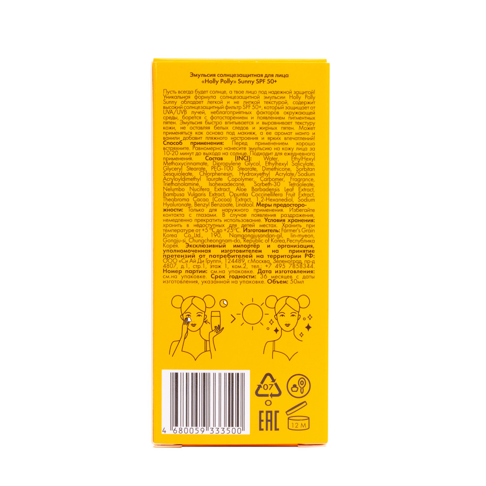 Holly Polly Эмульсия солнцезащитная для лица «Sunny SPF 50+»-5% +46