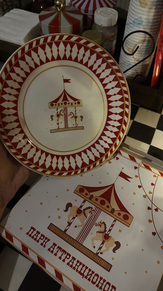 Прекрасная тарелка, безумно люблю цирковые принты и карусель. Тарелка как будто под меня создана. Хорошее качество