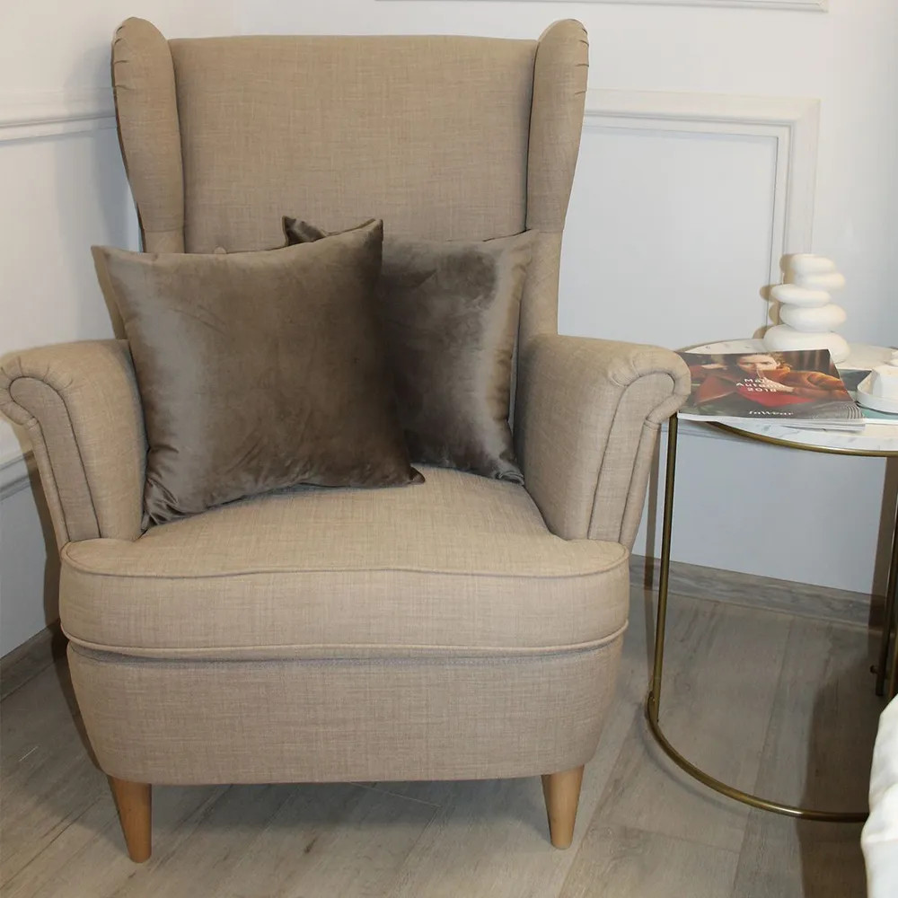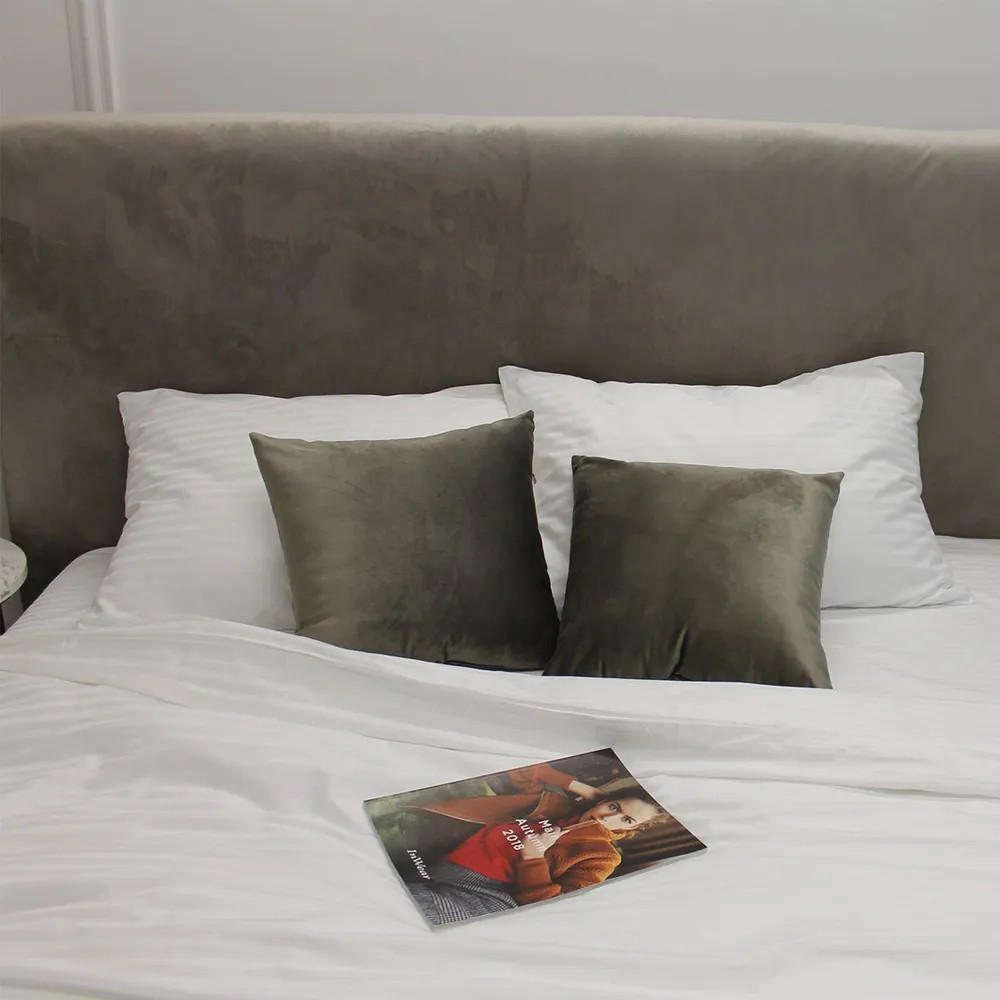 Подушки на троечку . Нитки торчали , чехол не снимается . Ткань приятная, но если замарается не понятно как стирать