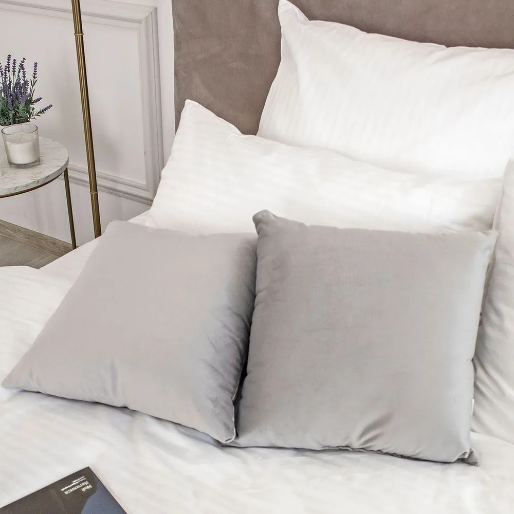 Подушки на троечку . Нитки торчали , чехол не снимается . Ткань приятная, но если замарается не понятно как стирать