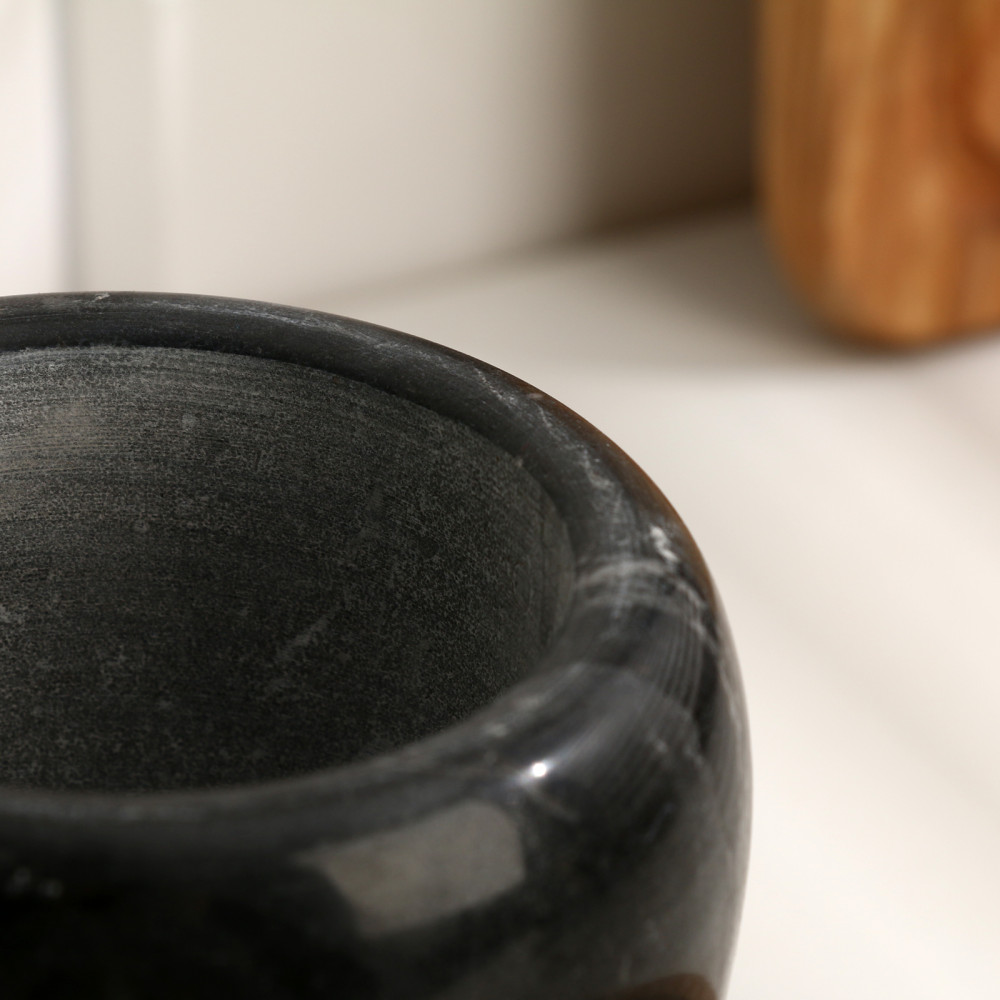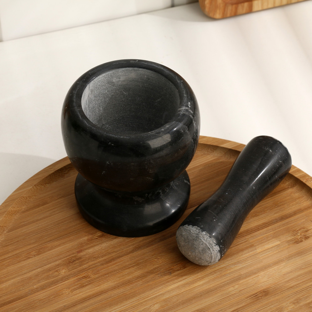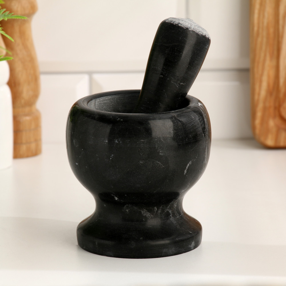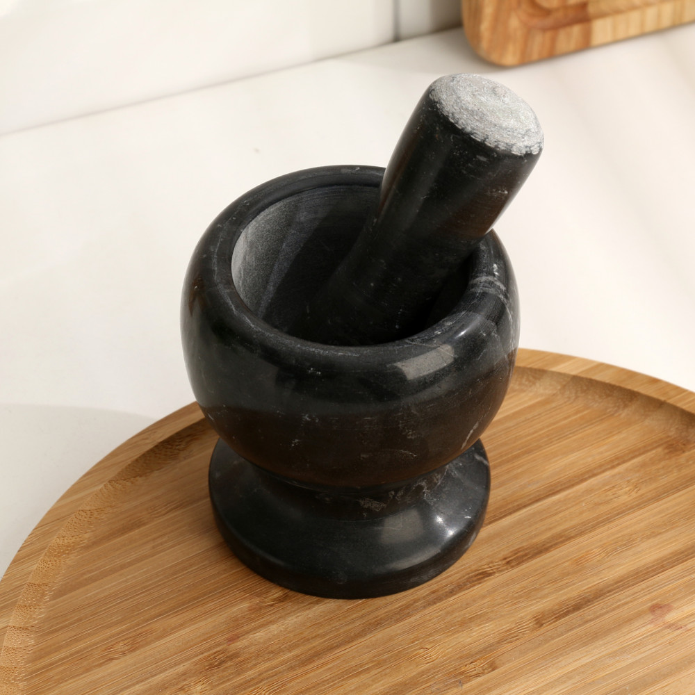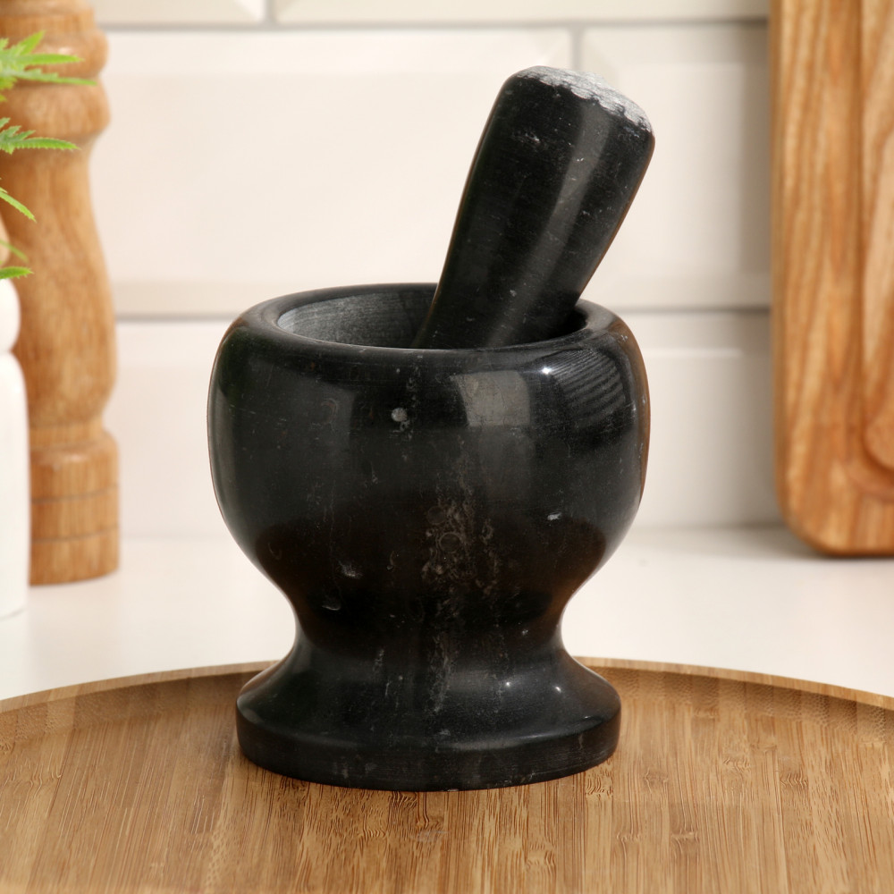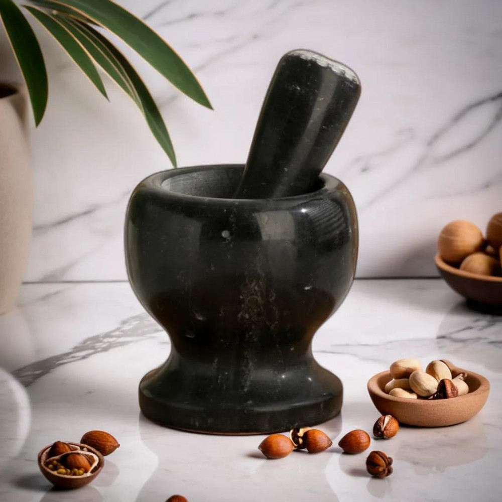 Ступка с пестиком — это универсальное кухонное приспособление, которое идеально подходит для измельчения, дробления и растирания специй, трав, зёрен, орехов, чеснока, таблеток, семян, соли и т. д. Каменные ступки очень прочные и выдерживают годы интенсивного использования. Камень не вступает в реакцию с кислотами и щелочами, поэтому вкусовые качества и ароматы ингредиентов не искажаются. Каменные ступки имеют слегка шероховатую поверхность, что позволяет измельчать и растирать специи, травы и другие ингредиенты до нужной консистенции. Из-за своего веса каменные ступки остаются на месте во время измельчения ингредиентов, обеспечивая удобство и безопасность использования.