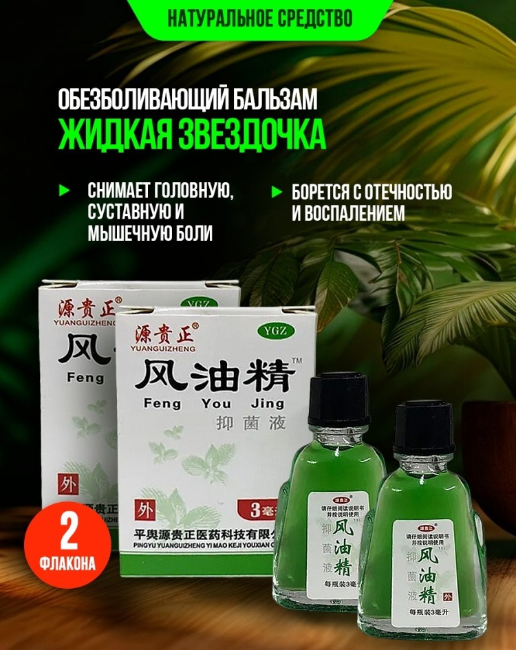 Набор бальзамов «Звездочка жидкая»мощность эффект неэффективность количество флаконов В данный момент этот товар отсутствует в продаже. Возможно, у нас найдется аналогичный или похожий товар здесь. Обезболивающий китайский бальзам на основе трав и эфирных масел. Натуральной средство с противовоспалительным и согревающим эффектом. Быстро избавляет от головной, суставной и мышечной боли, улучшает кровообращение, снимает отечность и воспаления. Способствует лечению и профилактике простудных заболеваний. Благотворно воздействует на нервные окончания, находящиеся в рефлекторных зонах, поэтому в китайской медицине считается незаменимым средством при точечном массаже. |