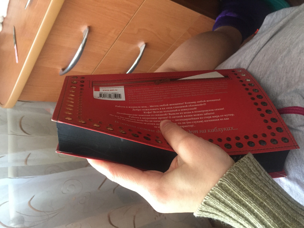 Очень удивила само оформление книги, буд-то держишь в руках сумочку)) Я В Восторге!!! Не однократно видела фильм "Дьявол носит Prada" очень понравился! Шрифт кстати в книге очень читабельный!