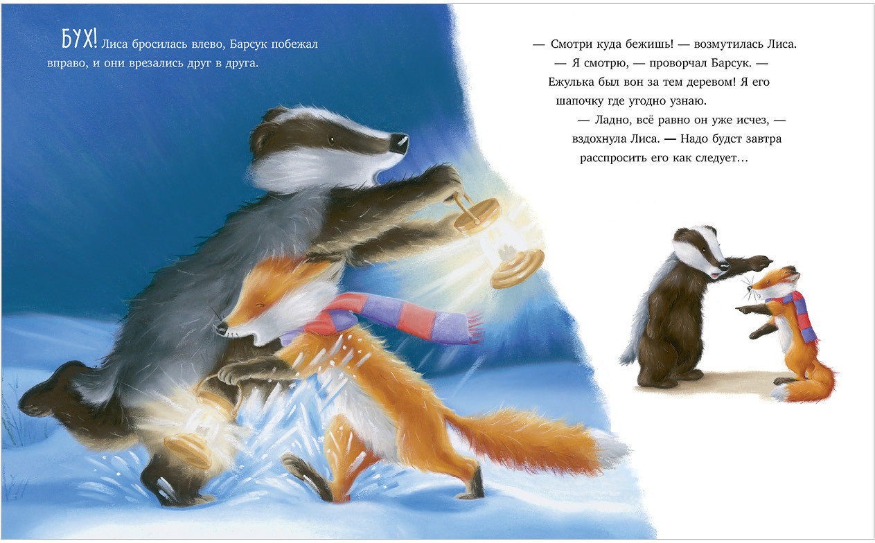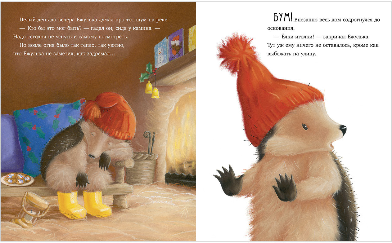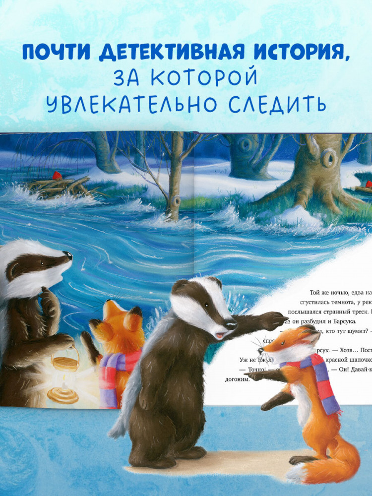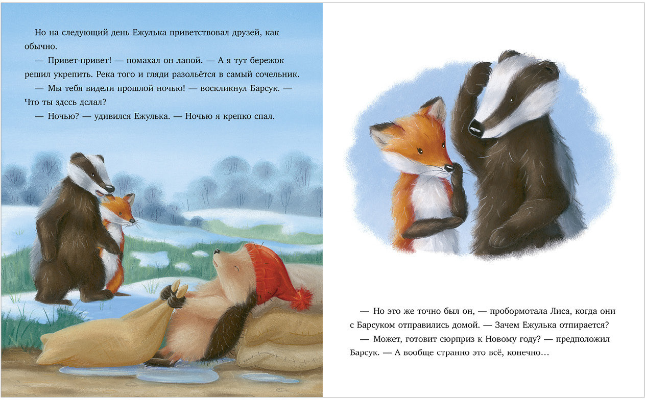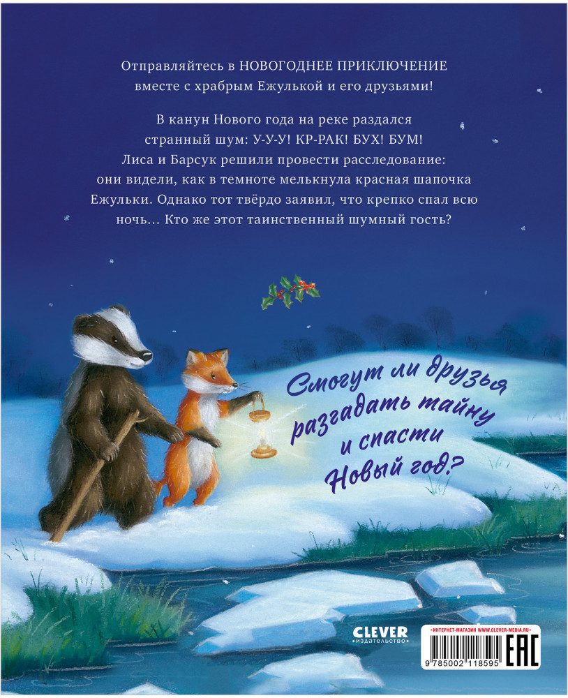 В канун Нового года на реке раздался странный шум: У-У-У! КР-РАК! БУХ! БУМ! Лиса и Барсук решили провести расследование: они видели, как в темноте мелькнула красная шапочка Ежульки. Однако тот твердо заявил, что крепко спал всю ночь... Кто же этот таинственный шумный гость? И почему Новый год оказался под угрозой?