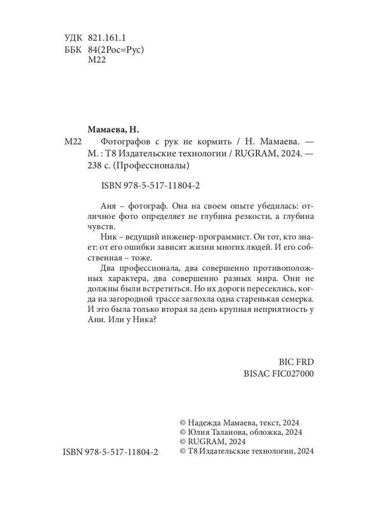 💳 Оплатить за товар можно при получении 🇰🇿 Есть бесплатная доставка по Казахстану от 1 дня 🎁 Копите бонусы с каждой покупки Серия: Профессионалы Аня — фотограф. Она на своем опыте убедилась: отличное фото определяет не глубина резкости, а глубина чувств. Ник — ведущий инженер-программист. Он тот, кто знает: от его ошибки зависят жизни многих людей. И его собственная — тоже. Два профессионала, два совершенно противоположных характера, два совершенно разных мира. Они не должны были встретиться. Но их дороги пересеклись, когда на загородной трассе заглохла одна старенькая семерка. И это была только вторая за день крупная неприятность у Ани. Или у Ника? |
