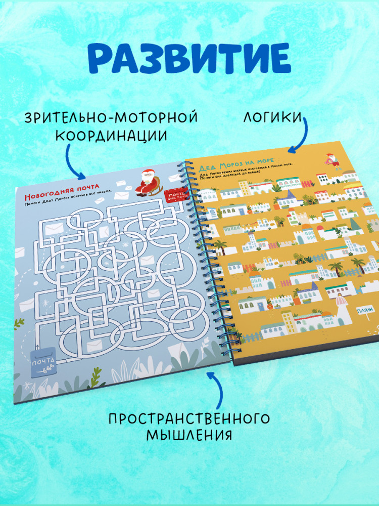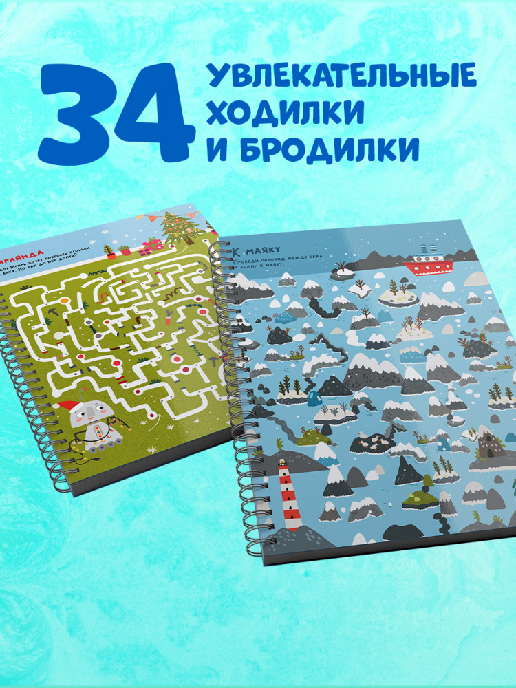 Многоразовая развивающая тетрадь «Зимние лабиринты и ходилки» надолго займет ребенка и поможет создать праздничное настроение.