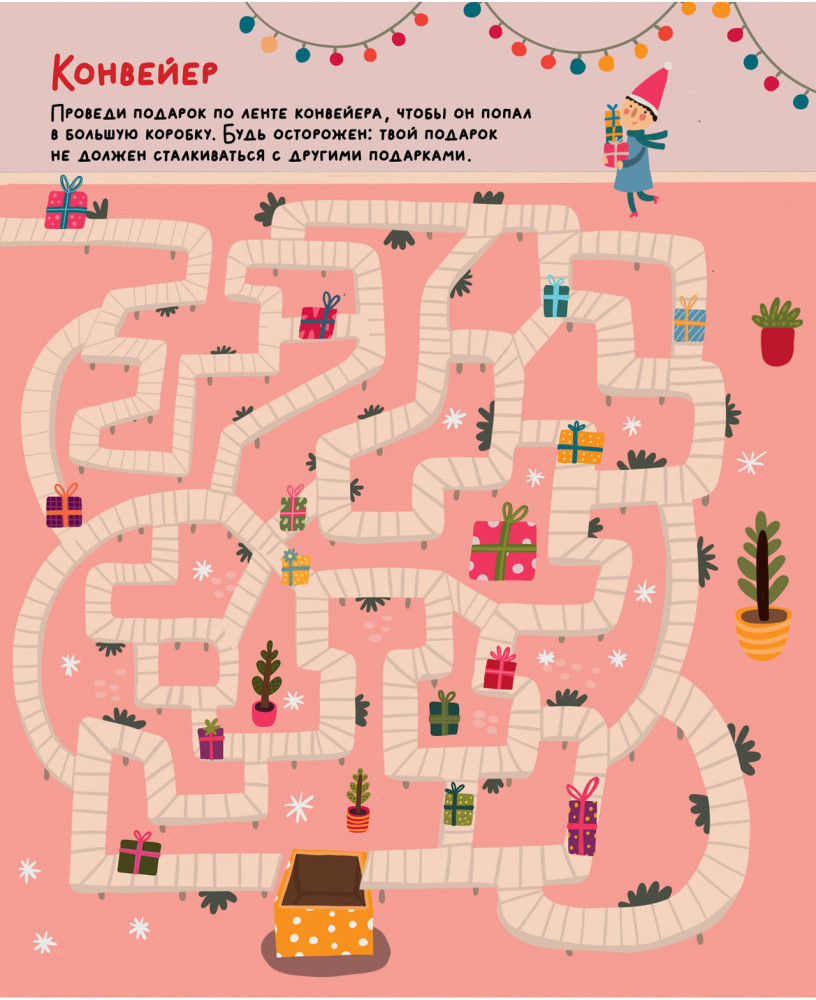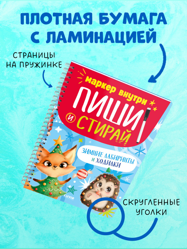 В этой книжке 34 красочных лабиринта и на каждой странице малыша ждет новый сюжет: снежные дорожки, ледяные горки, праздничные угощения и долгожданные подарки от Деда Мороза! А еще здесь совсем не страшно ошибиться с выбором пути: след маркера легко стирается ластиком на колпачке или салфеткой.