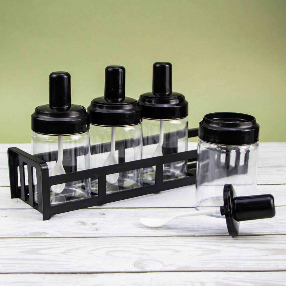 💳 Оплатить за товар можно при получении 🇰🇿 Есть бесплатная доставка по Казахстану от 1 дня 🎁 Копите бонусы с каждой покупки Набор для специй для дома — это 4 стильные баночки на подставке для хранения специй, для сыпучих продуктов, сахара и соли, чая, кофе. Баночки для специй с силиконовым уплотнителей защищают продукты от излишней влаги и проникновения посторонних запахов, сохраняют приправы и специи свежими долгое время. Баночки с крышкой для специй размещаются на подставке, организуя пространство и поддерживают порядок на кухне. Крышка емкости для хранения сыпучих продуктов оснащена встроенной ложкой для удобства использования и дозирования специй |