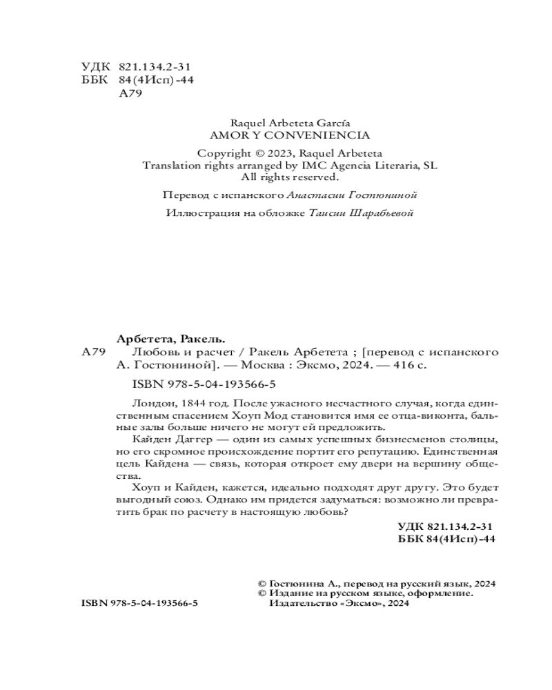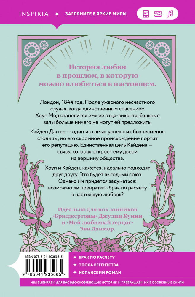 💳 Оплатить за товар можно при получении 🇰🇿 Есть бесплатная доставка по Казахстану от 1 дня 🎁 Копите бонусы с каждой покупки Серия: Cupcake. Бестселлеры Буктока. Испания Лондон, 1844 год. После ужасного несчастного случая, когда единственным спасением Хоуп Мод становится имя ее отца-виконта, бальные залы больше ничего не могут ей предложить. Кайден Даггер — один из самых успешных бизнесменов столицы, но его скромное происхождение портит его репутацию. Единственная цель Кайдена — связь, которая откроет ему двери на вершину общества. Хоуп и Кайден, кажется, идеально подходят друг другу. Это будет выгодный союз. Однако им придется задуматься: возможно ли превратить брак по расчету в настоящую любовь? |