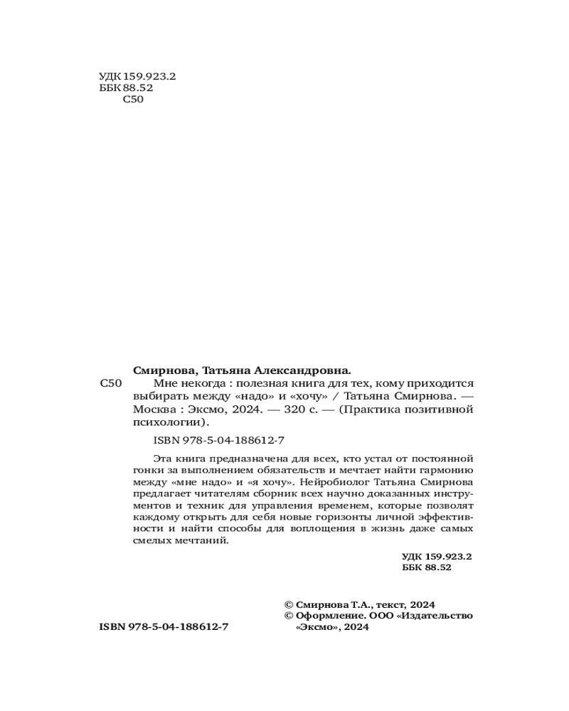 Мне некогда. Полезная книга для тех, кому приходится выбирать между «надо» и «хочу»Татьяна Александровна Смирнова -30% +168