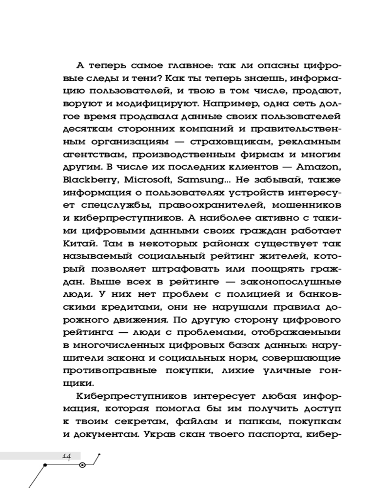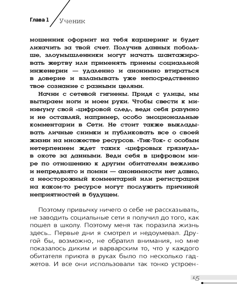 Серия: Цифровая песочница Эта книга состоит из двух частей: художественной, где рассказывается удивительная история мальчика, захотевшего стать белым хакером (хотя в ней, конечно же, есть и девочка, а также его друзья), и научно-популярной, в которой дается обучение (она так и называется в книге, ты увидишь ее, когда начнешь читать) программированию и разным другим компьютерным вещам, очень нужным в современном мире. Но на самом деле это единая история, позволяющая задуматься о добре и зле, не ошибиться в выборе правильной стороны и помогающая освоить способы защиты себя в бескрайнем мире интернета. Приключение и компьютерное обучение рука об руку! Для среднего и старшего школьного возраста. |