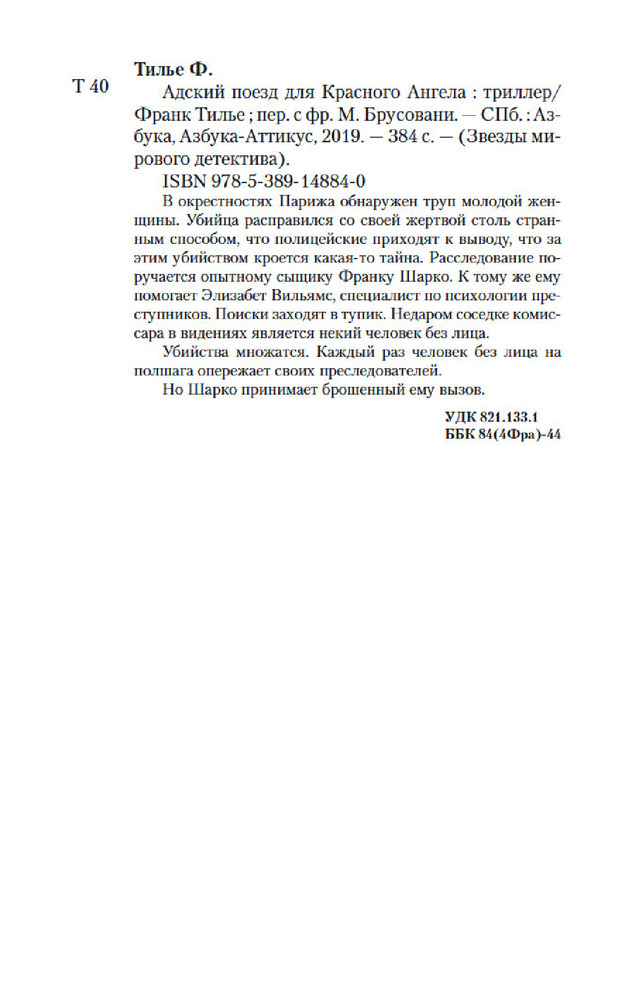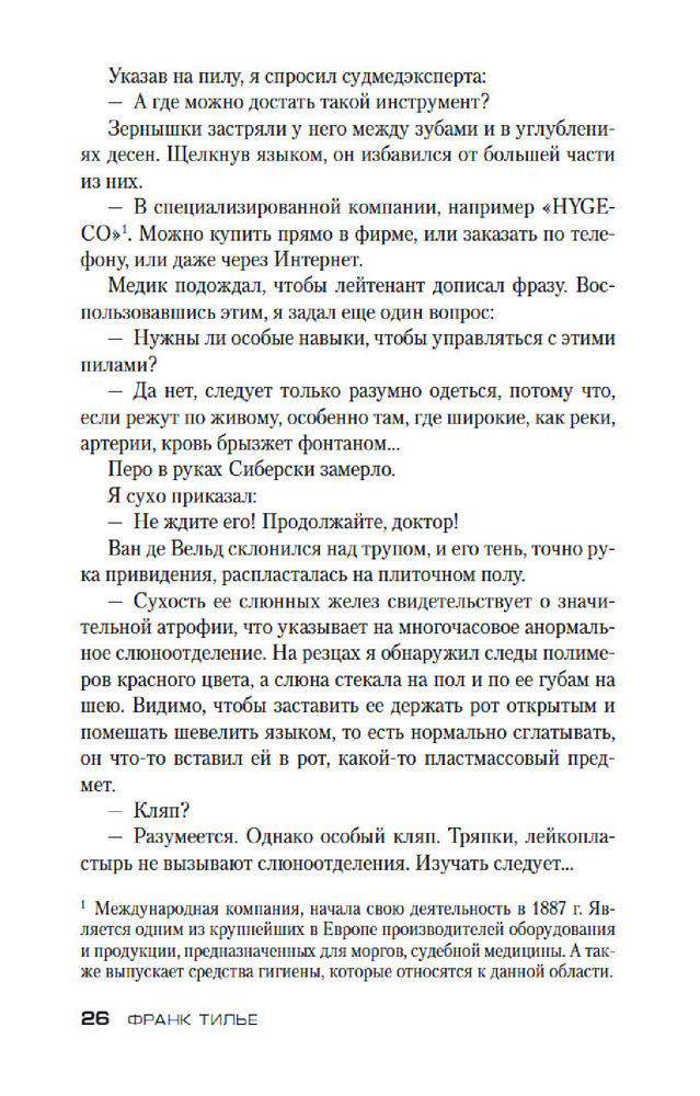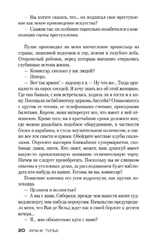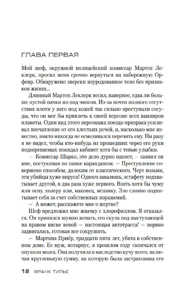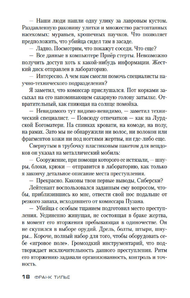 У меня есть 2 любимых автора " Франк Тилье и Жан-Кристоф Гранже", оба французы (если не ошибаюсь) - великолепные мастера детективов. Эта книга - пока лучшая, среди 7 прочитанных мною.
