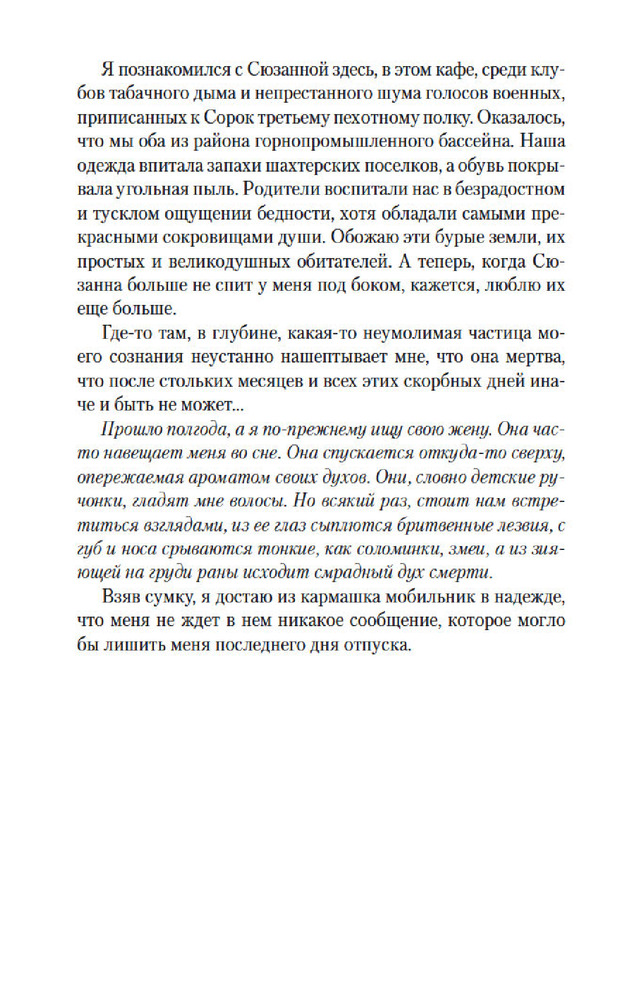 Комиссар Шарко не может оправиться от самой большой потери в его жизни. Ведь Она пропала…ее, его любимой жены, нет уже полгода в его жизни. Хоть он и является одним из опытных сыщиков, но даже он и другие квалифицированные специалисты не могут найти ни одну зацепку. Теперь его жизнь - это лишь воспоминания и боль. Боль от того, что он тут бездействует, а может она в эту самую минуту переживает муки ада от рук какого-либо психопата. Но ум говорит, что нет…ее просто уже нет, не может человек пропасть и быть живым целых полгода Очередное расследование помогает ему отвлечься от подобных мыслей и как-то существовать. Шарко приезжает на место вызова, и видит изуродованное тело молодой девушки, подвешенное на крюки, стены залиты кровью, голова отрезана. Что за псих мог такое сотворить? И пока он разгадывает и цепляется за некие следы, жертв становится больше. Убийца не просто псих, но и умный человек, оттого и невозможно его поймать. По его мнению, Он- каратель душ грешных людей. Успеет ли опытный сыщик предотвратить эти кровавые убийства? Это первое произведение, с которой я начала знакомство столь восхвалённого писателя. Не могу сказать, что сама идея книги понравилось. Это смесь мерзости, кровавых тайн, БДСМ и пошлости. Конечно, втягиваешься в рассказ, но остаётся осадок грязи после прочтения книги. Я бы не советовала читать слабонервных людям, этот нелёгкий женский детективчик.