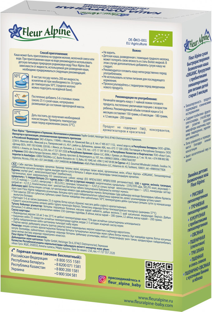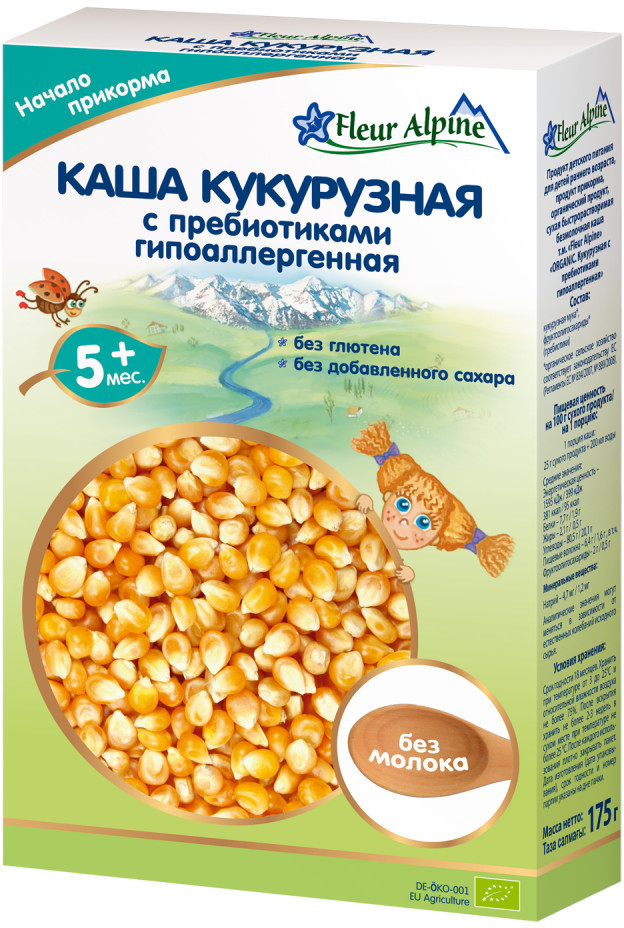 Fleur Alpine Каша кукурузная безмолочная детская гипоаллергенная с пребиотиками+39