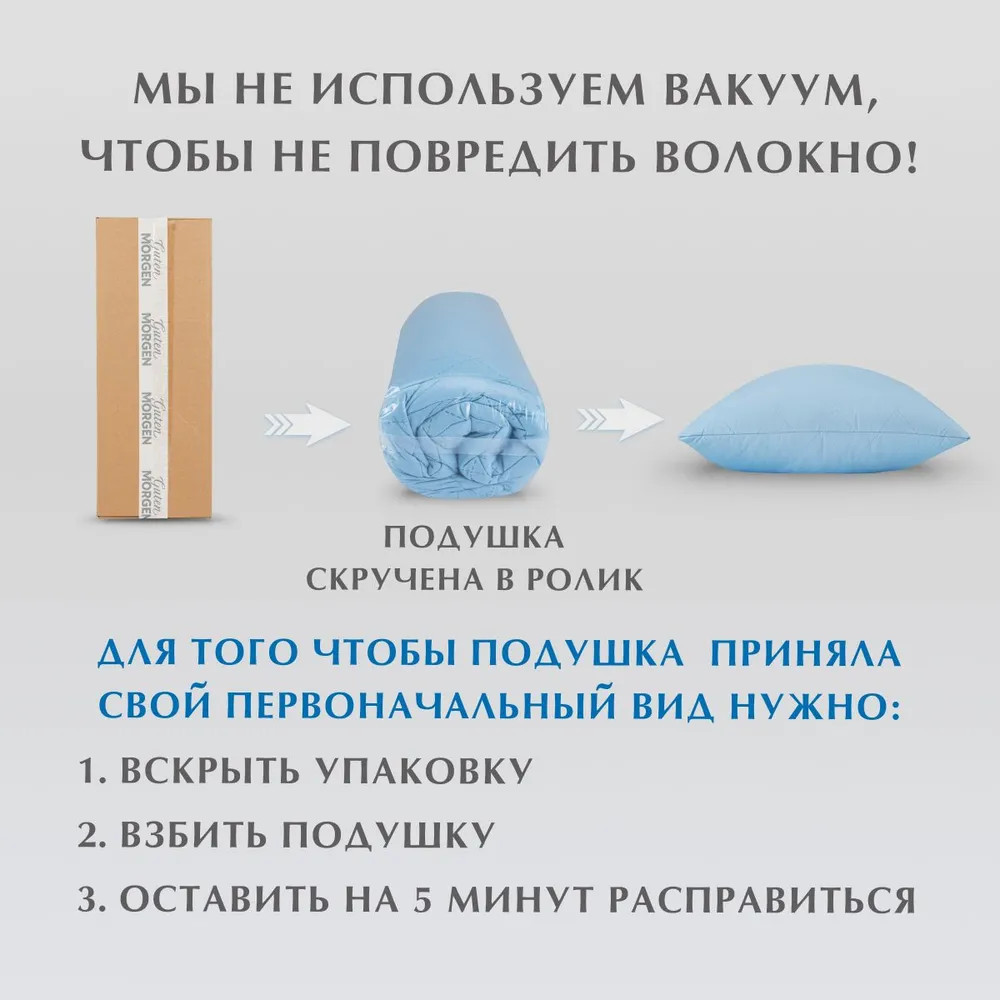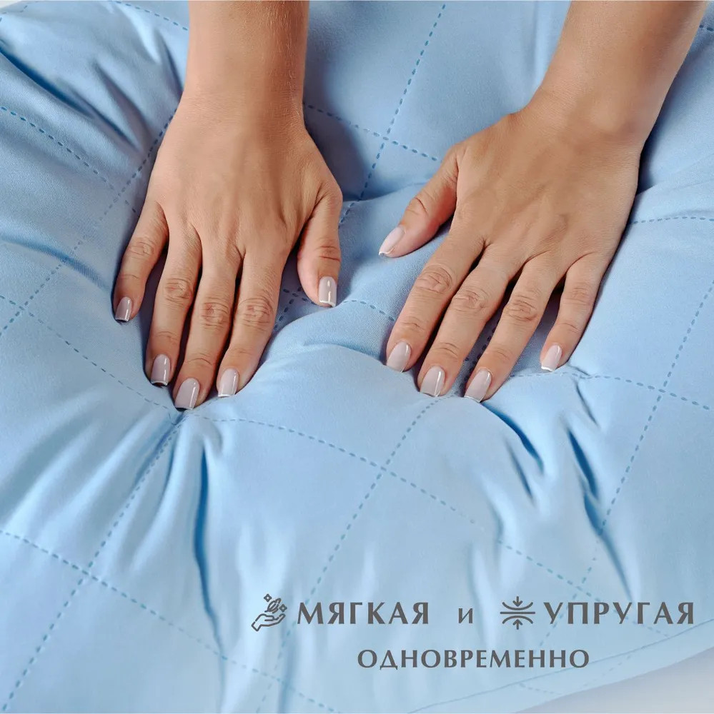 Чехол простеган с полиэфирным волокном для придания упругости и долговечности. Подушка почти не оказывает ответного давления на сосуды и ткани тела, благодаря чему сохраняется нормальный кровоток. Благодаря отличной воздухопроводимости сохраняется комфортная для отдыха температура поверхности изделия, сон будет комфортным даже в жаркие летние ночи. Все материалы экологически безопасны, не провоцируют аллергических реакций. Внутренний наполнитель под названием «Эстрелль®» имеет уникальную формулу толщины и длины волокна, позволяющую при таком идеальном соответствии получать упругий шарик, который не дает возможность волокнам подушки сваливаться, что в свою очередь продлевает срок пользования. Волокна наполнителя внутри имеют воздушный канал в продольном направлении, что делает их более пышными, мягкими, а также способствует повышенному воздухообмену. Он полностью гипоаллергенен, устойчив к размножению бактерий, грибка и других вредных микроорганизмов.