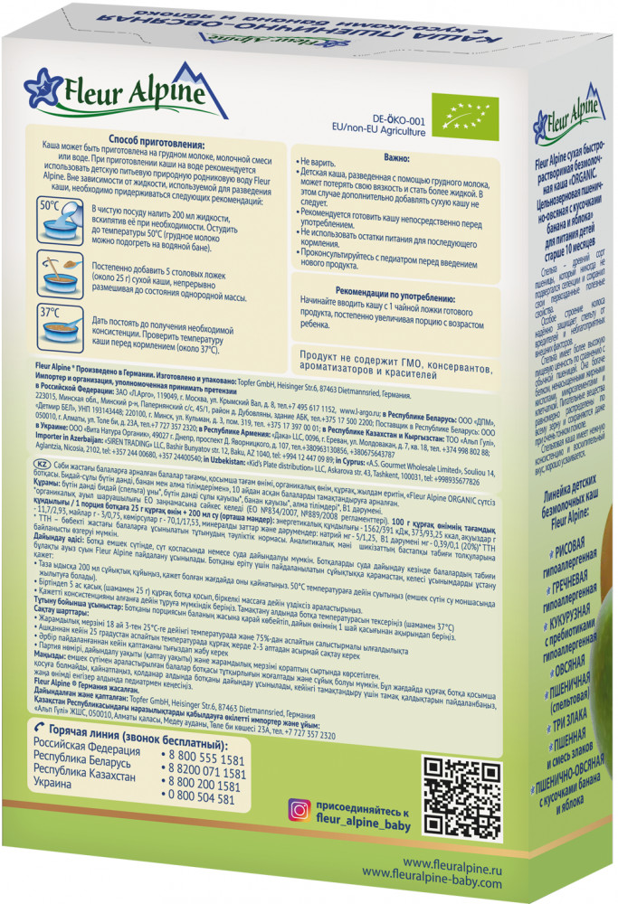 Fleur Alpine Каша пшенично-овсяная с кусочками банана и яблока-20% +31