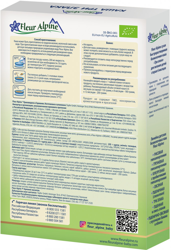 Fleur Alpine Каша безмолочная «Три злака»+39