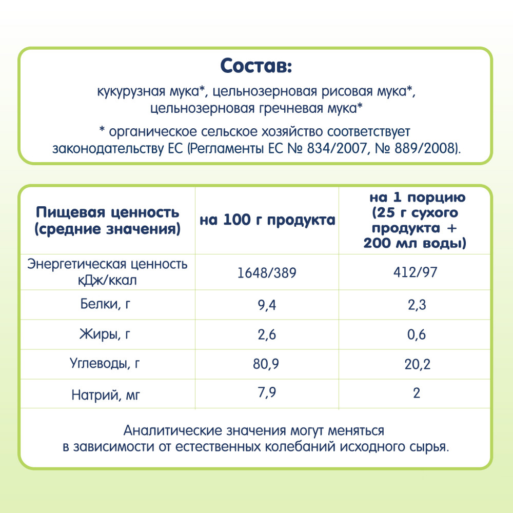 💳 Оплатить за товар можно при получении 🇰🇿 Есть бесплатная доставка по Казахстану от 1 дня 🎁 Копите бонусы с каждой покупки Мультизлаковая каша идеально подходит для продолжения прикорма. Разводится легко, быстро и без комочков. Нежная, воздушная консистенция готовой каши в виде «сугробиков» напоминает снег, который ложится на поверхность небольшими пышными неровностями. Во вкусе каши гармонично сочетаются все входящие в ее состав злаки. Аромат каши нежный, аппетитный. Мультизлаковая каша обладает повышенной питательной ценностью по сравнению с монокомпонентной, поэтому особо подходит малышам с недобором веса. |