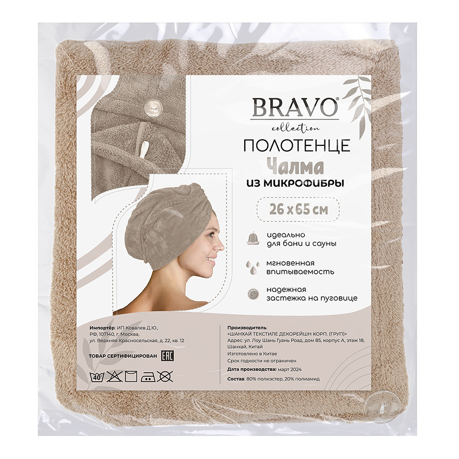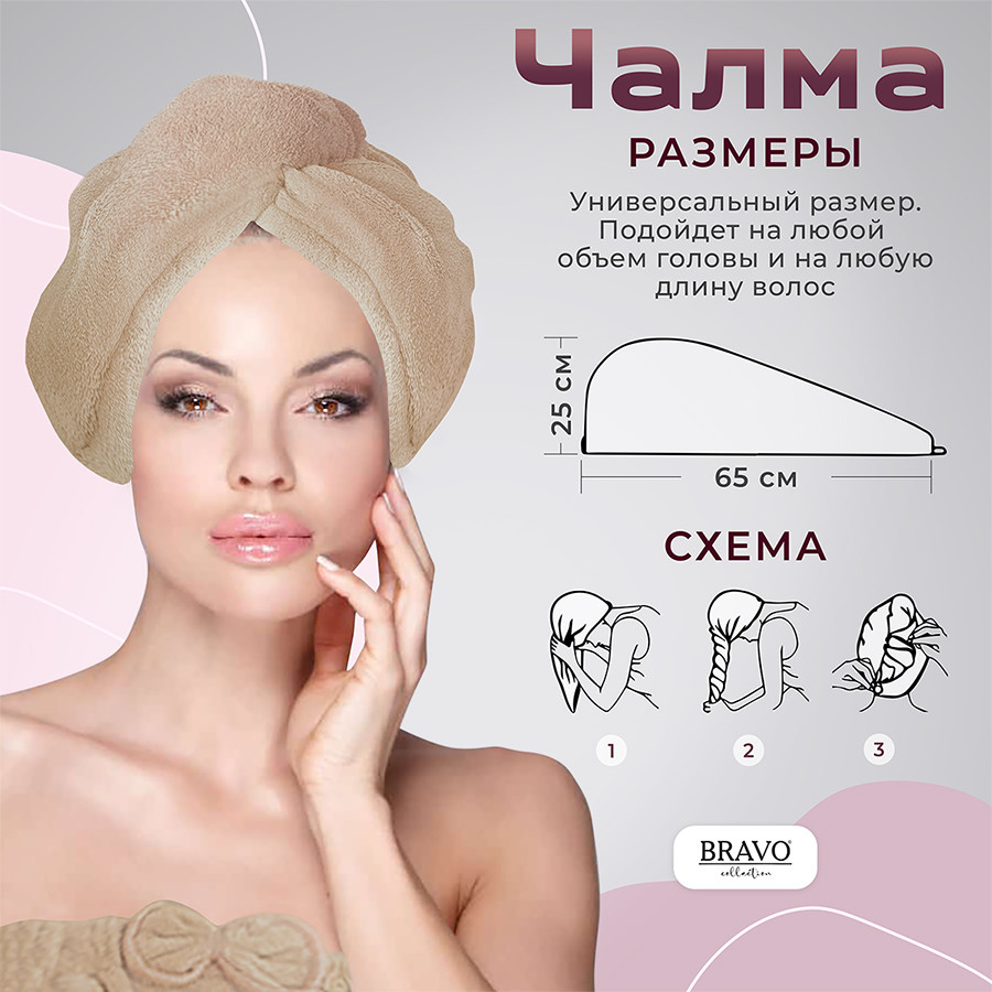 💳 Оплатить за товар можно при получении 🇰🇿 Есть бесплатная доставка по Казахстану от 1 дня 🎁 Копите бонусы с каждой покупки Полотенце-чалма для волос, изготовлено из микрофибры. Произведено в Китае, состав: 80% полиэстер, 20% полиамид, плотность 300г/м. Каждое полотенце в индивидуальном п/п пакете, есть картонная карточка с описанием товара. Материал микрофибра — достойная альтернатива хлопку, не уступает в потребительских свойствах, при этом значительно дешевле. Такие полотенца нужны и дома, и в бане или сауне. |