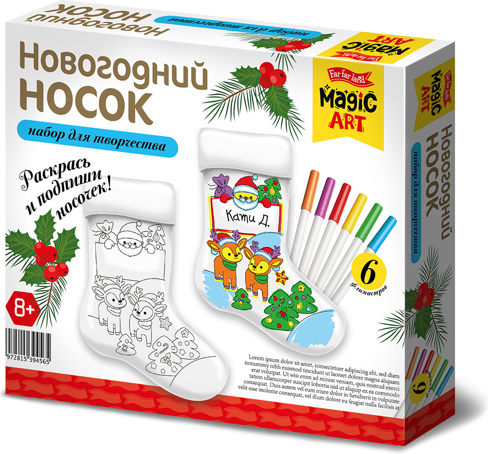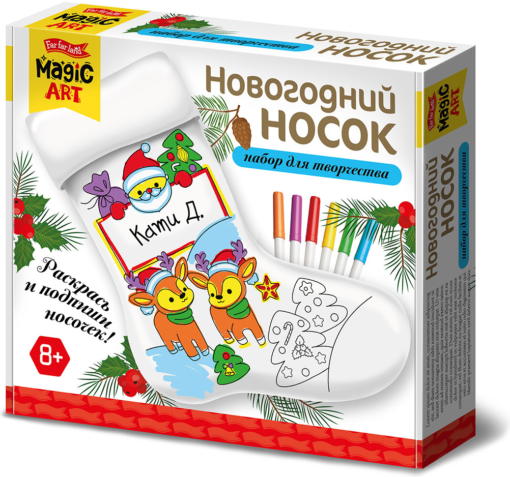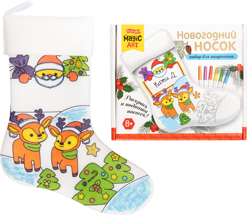 С набором для творчества «Новогодний носок» можно создать своими руками замечательный подарок для близких людей. Раскрасьте носок и положите в него милый сюрприз или насыпьте конфет. Друзья обязательно порадуются такому подарку! |