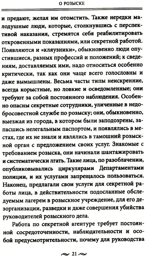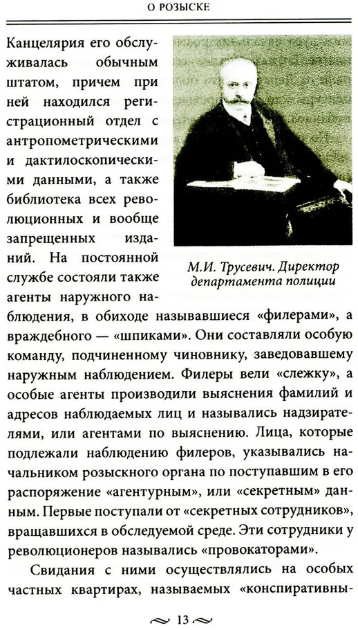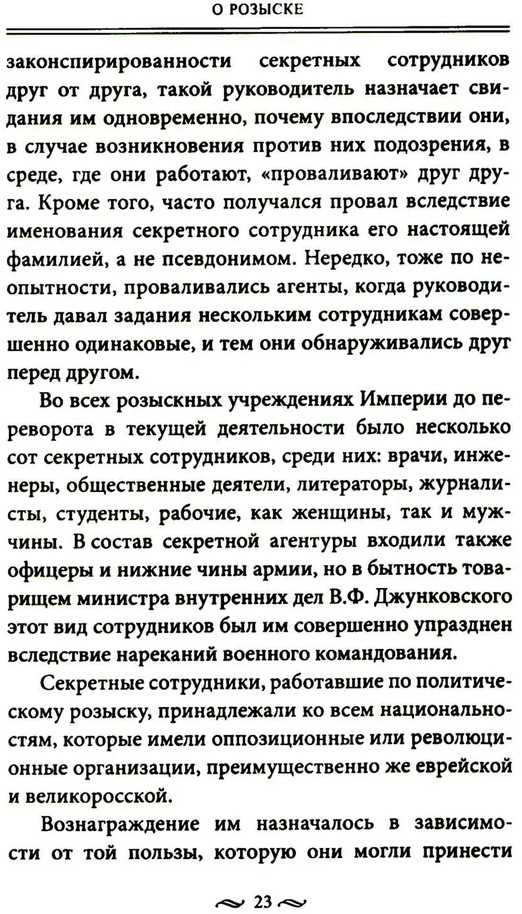 Работа тайной полиции. Спецоперации, методы вербовки, тактика борьбы, проведение оперативно-разыскной работы царской охранкиВ данный момент этот товар отсутствует в продаже. Возможно, у нас найдется аналогичный или похожий товар здесь. Павел Павлович Заварзин — российский жандармский офицер, генерал-майор Отдельного корпуса жандармов. Книга сотрудника тайной полиции рассказывает о делах царской охранки, содержит подробные детали о работе профессиональных революционеров. Описаны приемы по внедрению агентов в преступную среду и внешнему наблюдению. Мы узнаем, что тайная полиция — контрреволюционная и контртеррористическая организация и занималась не просто поимкой обычных преступников. Ее задачей было выявление шпионов и врагов режима, на что была направлена задача внедренных агентов и проверка корреспонденции с целью сохранения государственности в России. Повествование насыщенное и яркое, рассказано как об удачных, так и о провальных операциях, методах вербовки, тактике борьбы, проведению оперативно-разыскной работы. |