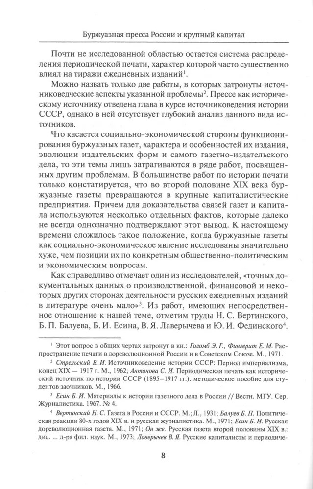 Буржуазная пресса России и крупный капиталВ данный момент этот товар отсутствует в продаже. Возможно, у нас найдется аналогичный или похожий товар здесь. Серия: История и историософия государства Российского Первая научная публикация, в которой рассматриваются особенности взаимоотношений между капиталом и буржуазной прессой, вопросы превращения газетноиздательского дела в отрасль капиталистического предпринимательства в дореволюционной России. В центре внимания крупнейшие столичные издания: «Новое время», «Русское слово», «Русские ведомости», «Речь», «Голос Москвы», «Утро России». Из двух составных элементов газетного дела (редакторской и издательской деятельности) главное внимание в работе обращено на издательскую или хозяйственную сторону деятельности газет. Большая часть финансовой информации о деятельности капиталистических компаний относилась к разряду коммерческой тайны, в силу чего завесой окутана и деятельность издательских предприятий. Кроме того, характерным для большинства буржуазных изданий является обязательное декларирование их независимости, надклассовости и объективности. Поэтому факты о финансовых связях изданий с определенными группами капиталистов, об источниках их финансирования и субсидирования тщательным образом скрывались хозяевами буржуазной прессы. Автор преодолевает информативную неопределенность, широко используя различные виды источников: прессу, архивные материалы редакций и издательств, личные фонды издателей и журналистов, а также мемуарную литературу. |