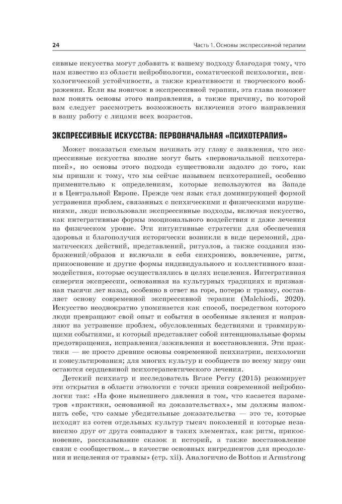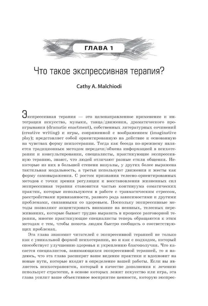 Перед вами первое профессиональное издание, посвященное экспрессивной терапии искусством. В нем отражены новые концепции, культурные практики и эмпирические подходы в области экспрессивной терапии и смежных направлений. Особенностью данного руководства является наглядное описание уникальных психотерапевтических методик экспрессивной терапии. Подробно описаны примеры работы на практике. Целостно и глубоко представлены вопросы по подготовке специалистов, обладающих должными профессиональными компетенциями. Издание рекомендовано врачам-психотерапевтам, психологам, а также специалистам в области искусства и художественного образования.