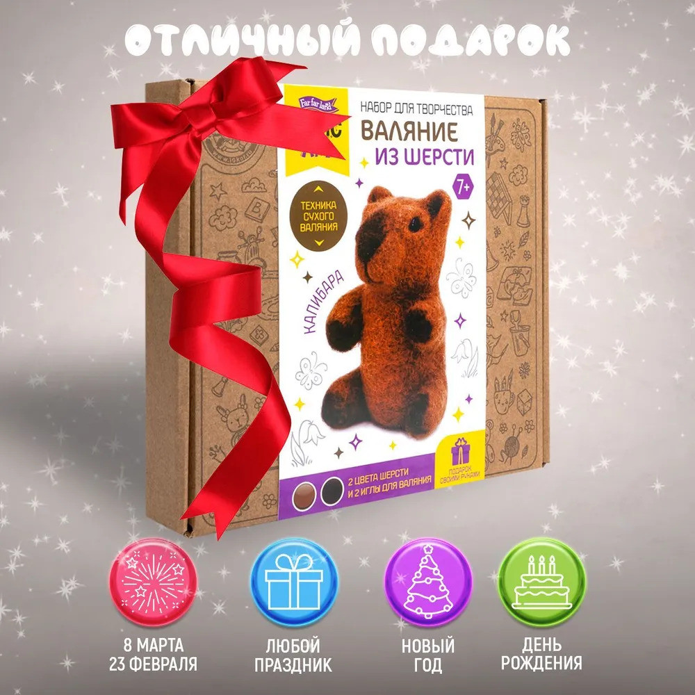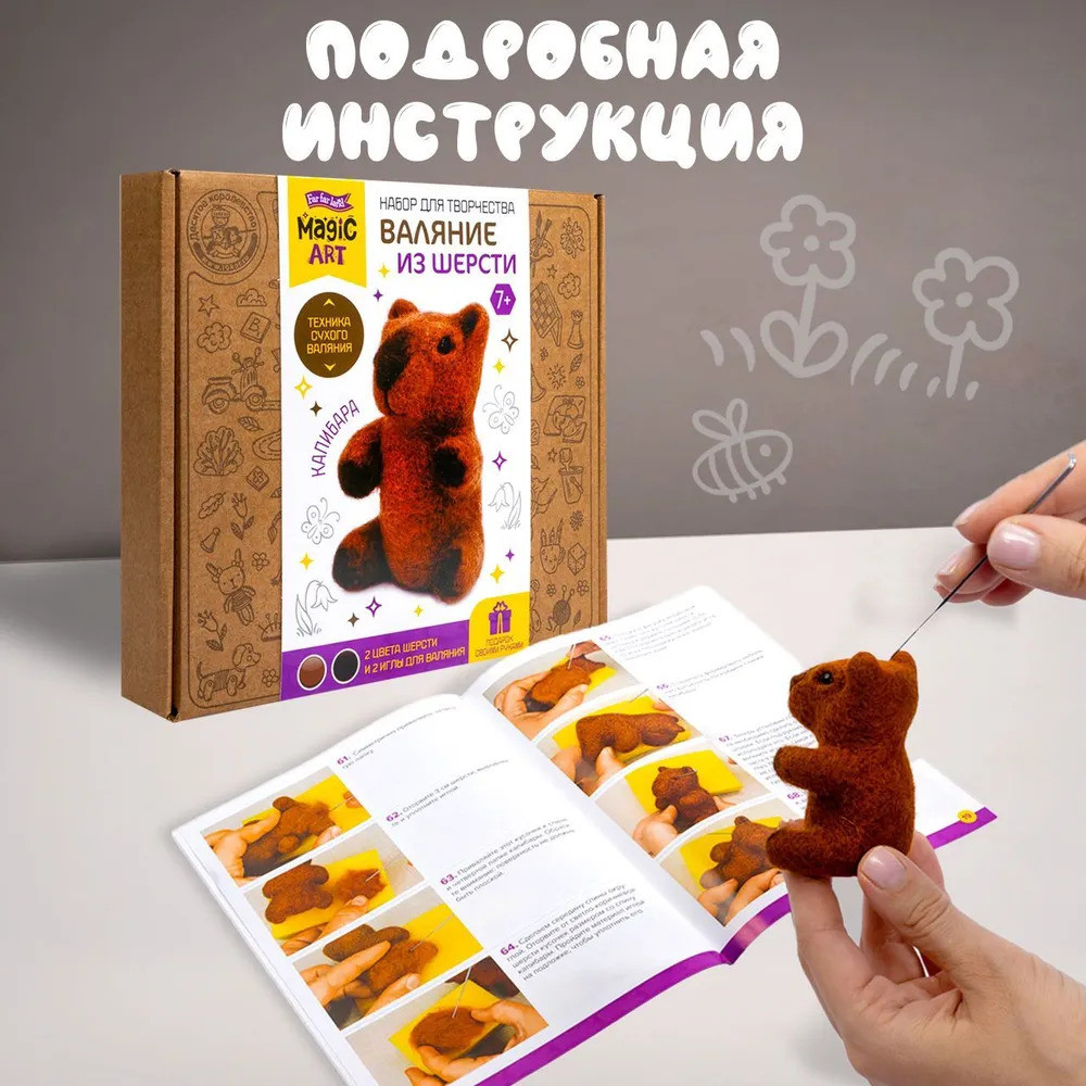 💳 Оплатить за товар можно при получении 🇰🇿 Есть бесплатная доставка по Казахстану от 1 дня 🎁 Копите бонусы с каждой покупки Серия: Magic art Валяние — это одно из древнейших видов рукоделия. В качестве искусства «hand-made» оно получило развитие с середины прошлого века. Секрет его популярности кроется в простоте освоения и огромной широте возможностей. Набор для валяния Капибара включает все необходимое для создания симпатичной игрушки в технике сухого валяния. |