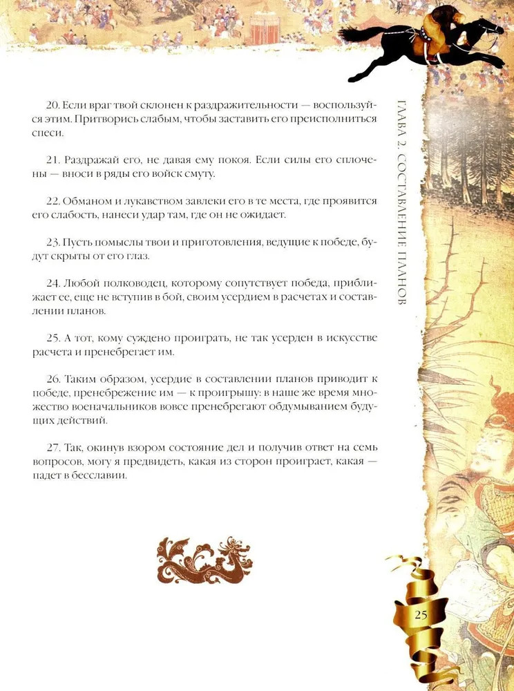 💳 Оплатить за товар можно при получении 🇰🇿 Есть бесплатная доставка по Казахстану от 1 дня 🎁 Копите бонусы с каждой покупки «Искусство войны» — гениальное произведение легендарного китайского полководца и военного стратега Сунь Цзы (544-496 до н. э.). Этот военный трактат представляет собой универсальное руководство, в котором в лаконичной форме изложены главные принципы стратегии, тактики и философии войны. Основные правила военного искусства, созданные и примененные Сунь Цзы более двух тысяч лет назад, не потеряли актуальности и в наши дни. В издание также включены афоризмы и высказывания крупнейших китайских философов и полководцев о военном искусстве. Книга предназначена для всех, интересующихся военной историей и законами военного искусства. |