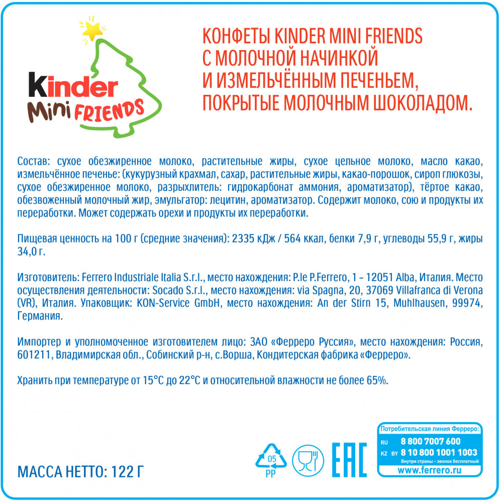 Kinder Набор конфет из молочного шоколада с молочной начинкой и измельчённым печеньем