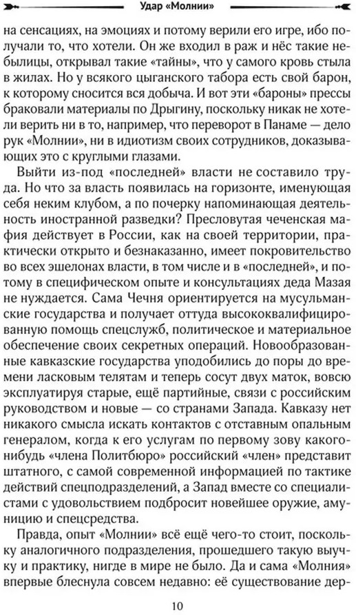 💳 Оплатить за товар можно при получении 🇰🇿 Есть бесплатная доставка по Казахстану от 1 дня 🎁 Копите бонусы с каждой покупки Настоящие профессионалы из секретного спецподразделения «Молния» не отступятся, пока не достигнут цели. Они умеют воевать, обладают блестящими тактическими навыками и знают, что такое дружба, совесть и офицерская честь. Однако опытным диверсантам-разведчикам предстоит столкнуться с предательством, интригами и личными интересами хитроумных политиков в беззаконные 90-е годы. Удастся ли бывшим бойцам элитного подразделения заблокировать силы диктаторского режима в Чечне? Смогут ли командир «Молнии» дед Мазай и его «зайцы» избежать ловушек кавказской мафии и отличить своих от чужих? Но главный вопрос автора — можно ли поступиться своими принципами ради общей цели? Остросюжетный боевик С. Алексеева увлекает читателя не только динамичным и захватывающим повествованием, но и интересными подробностями о работе российских спецслужб. |